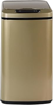 Hanover Home Hands-Free Metal Trash Can with Fingerprint-Resistant Finish, Soft-Close Motion Sensor Lid, and Removable Bin for Bathroom and Bedroom - 3.2 Gallons (12 Liters) Garbage Can in Gold