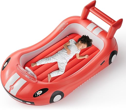 QPAU Inflatable Kids Bed, Toddler Travel Bed with Sides, Portable Kids Air Mattress with Hand Pump for Camping, Traveling, Vacation, Hotel, or Home Use