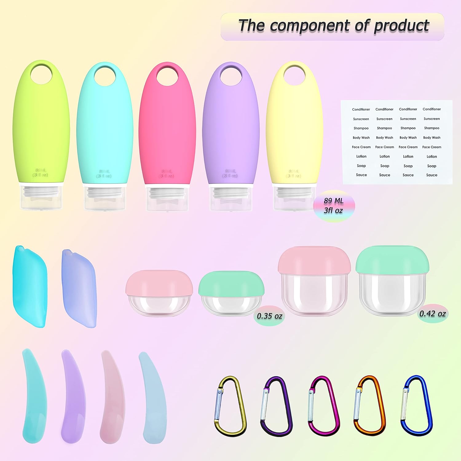 • DESIGN: Transparent bottle, dustproof cap, leak-proof buckle, waterproof pastable labels. Space-saving, strong sealing, no worry about leakage even during bumpy journeys