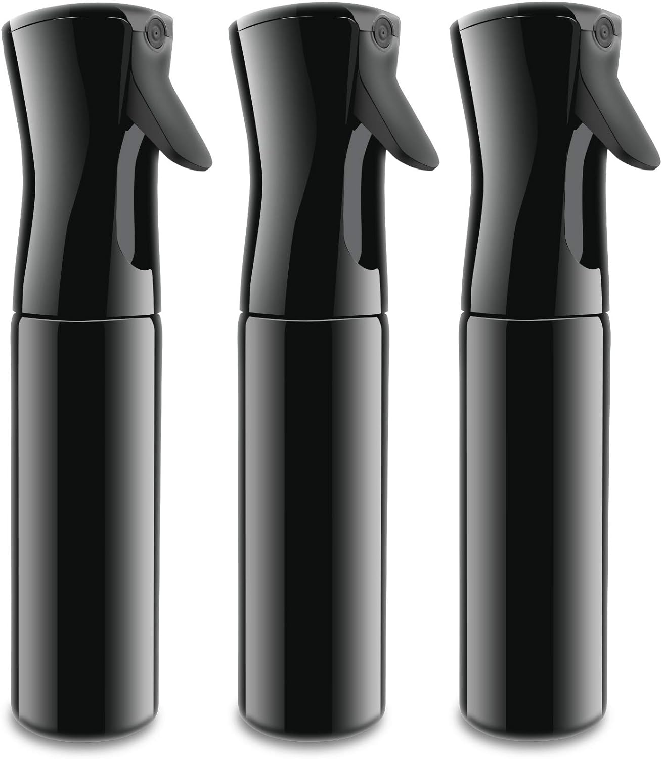 Hair Spray Misting Bottle - Ultra Fine Continuous Mist Sprayer For Hairstyling, Cleaning, Plants & Skin Care - By Beautify Beauties - Black (10 Ounce 1 Pack)