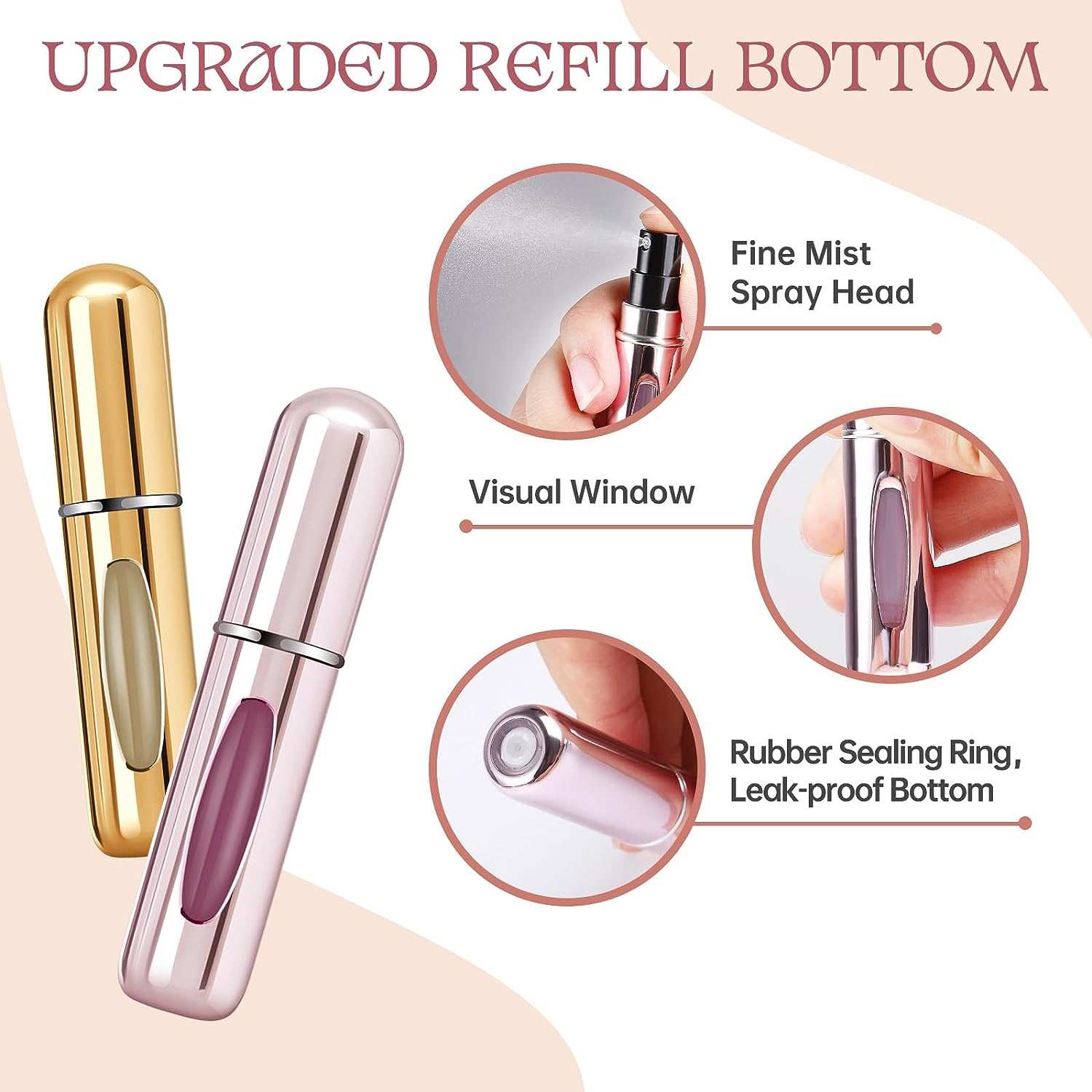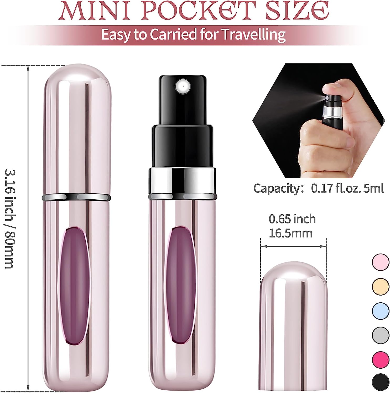 LABOTA Portable Perfume Travel Refillable Bottle, Travel Size Cologne Atomizer Dispenser, Pocket Purse Perfume On The Go Container, Spray Bottles For Traveling 5ml (6 Pack)