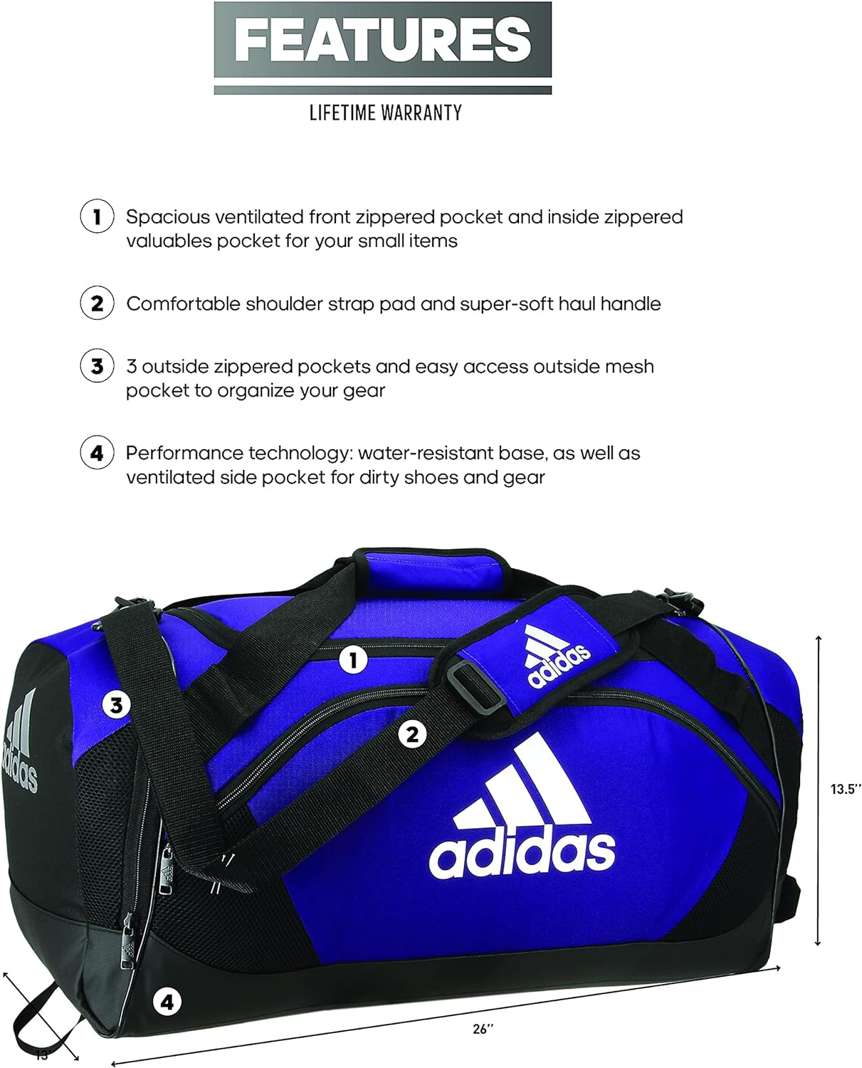 Keep gear organized and separated with this medium-size duffel bag. it's made of durable woven fabric with a water-resistant base. it has a spacious main compartment and a ventilated side pocket for wet or muddy shoes. a padded shoulder strap and padded handles make for comfortable carrying.