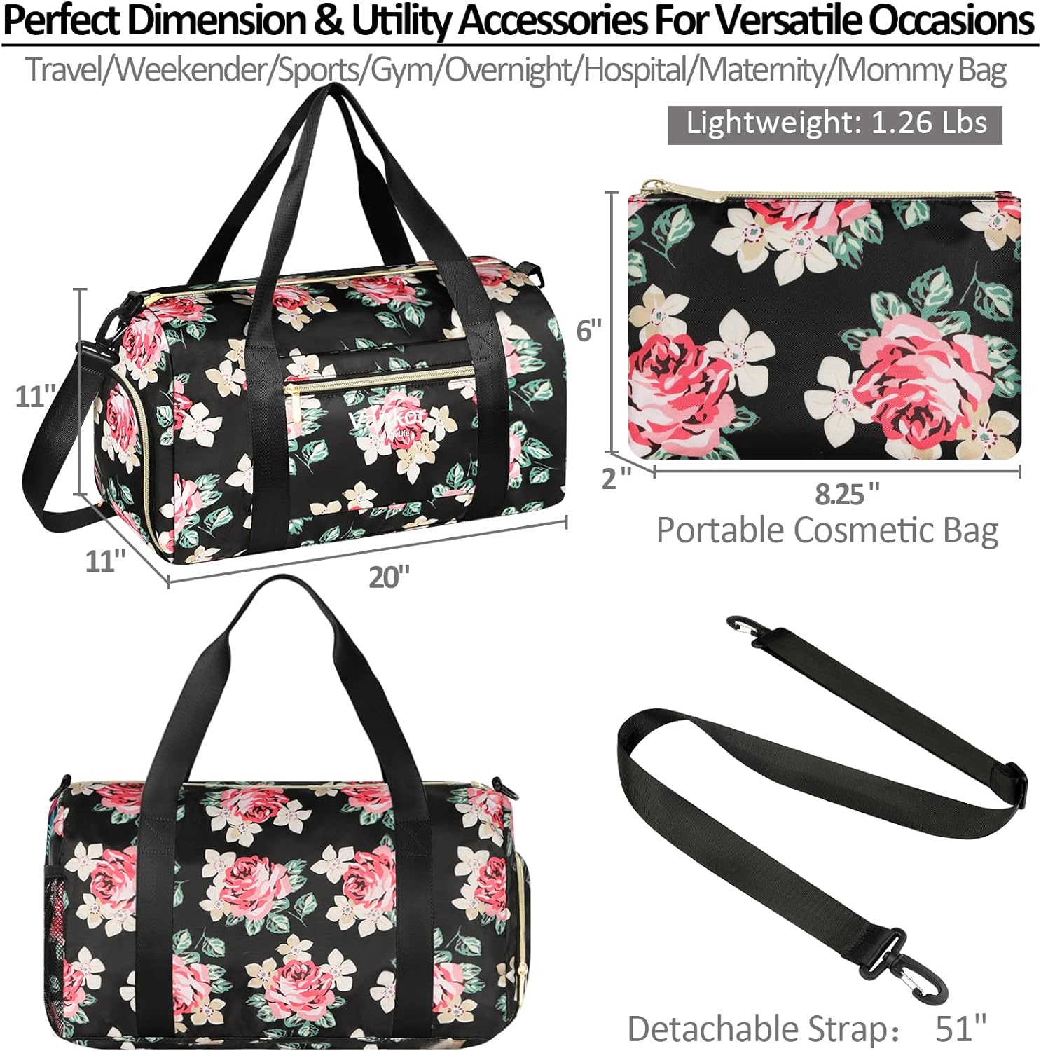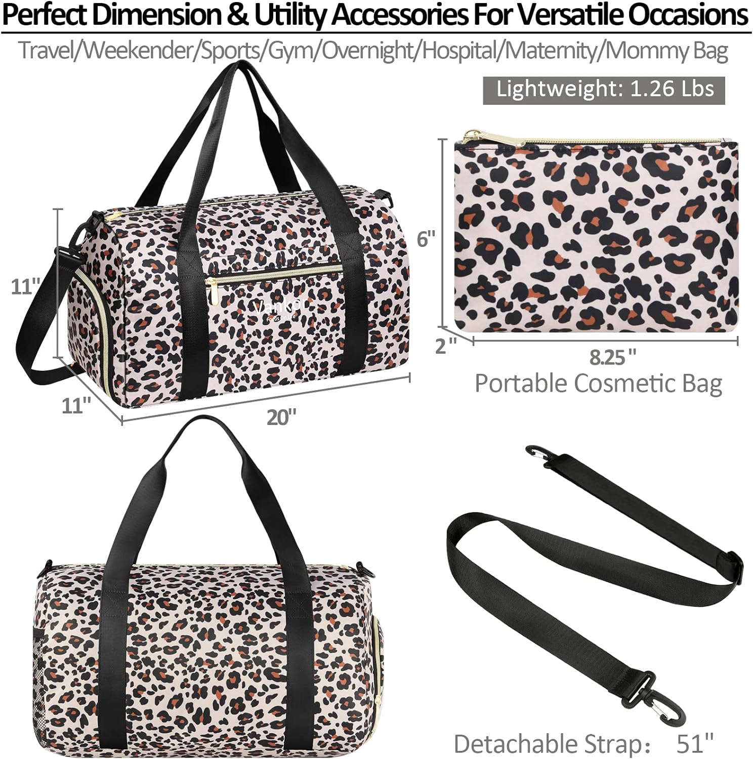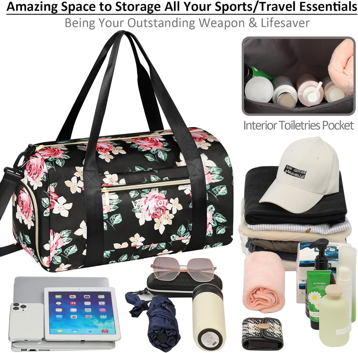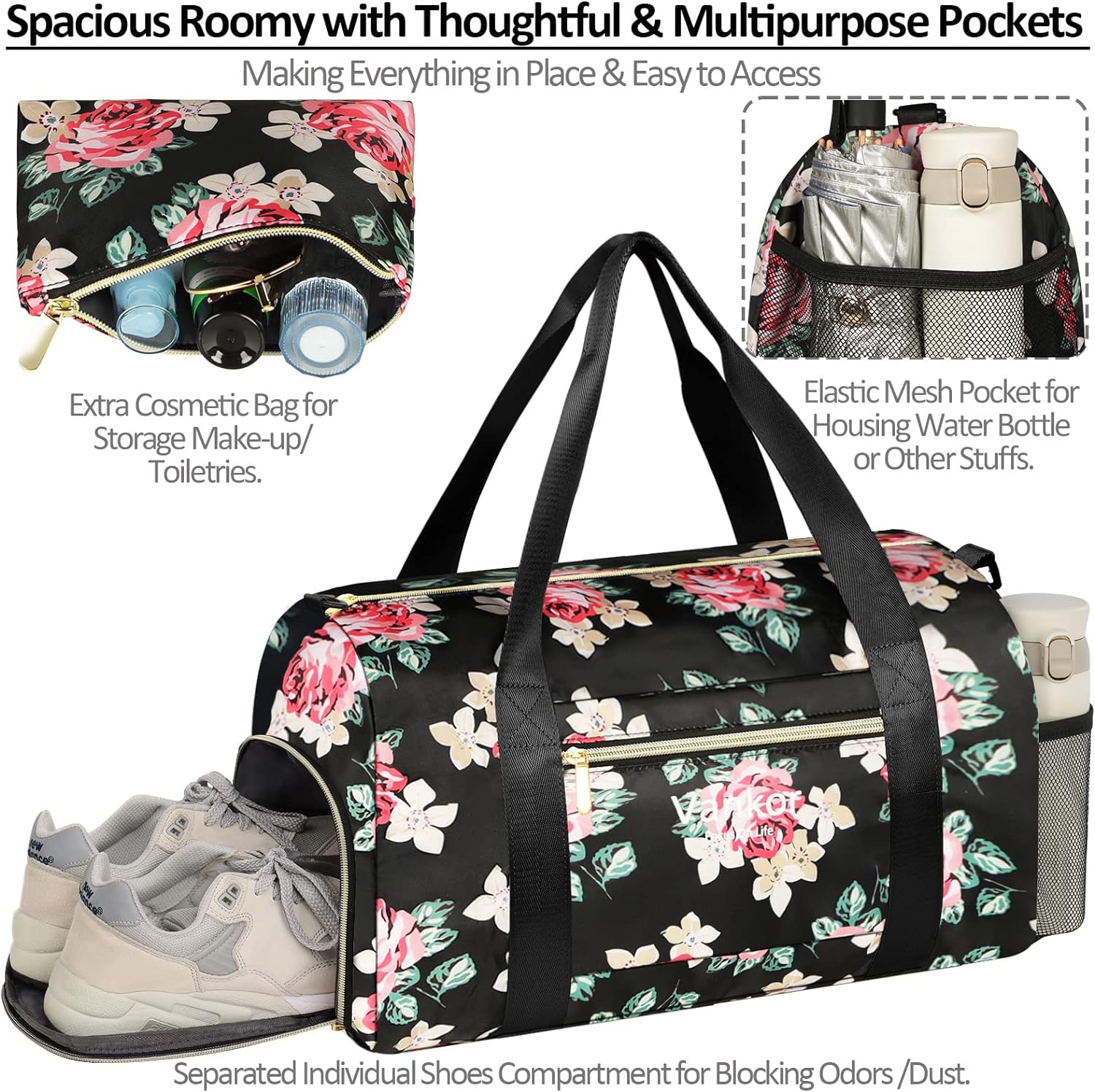 • 【MULTI-PURPOSE】- A bag for everything. Based on your needs,it can be a Gym Bag, Workout, Travel Duffel Bag, Sports Duffle Bag, Yoga Bag, Overnight bag, Beach Bag,Hospital Bag, Mommy bag, Maternity Bag or Weekender Bag. The bag also includes a removable shoulder strap, additional exterior storage and a trolley sleeve. Convenient for you to switch between different ways of carrying at any time.These weekender bags for women will be your sporting weapon.