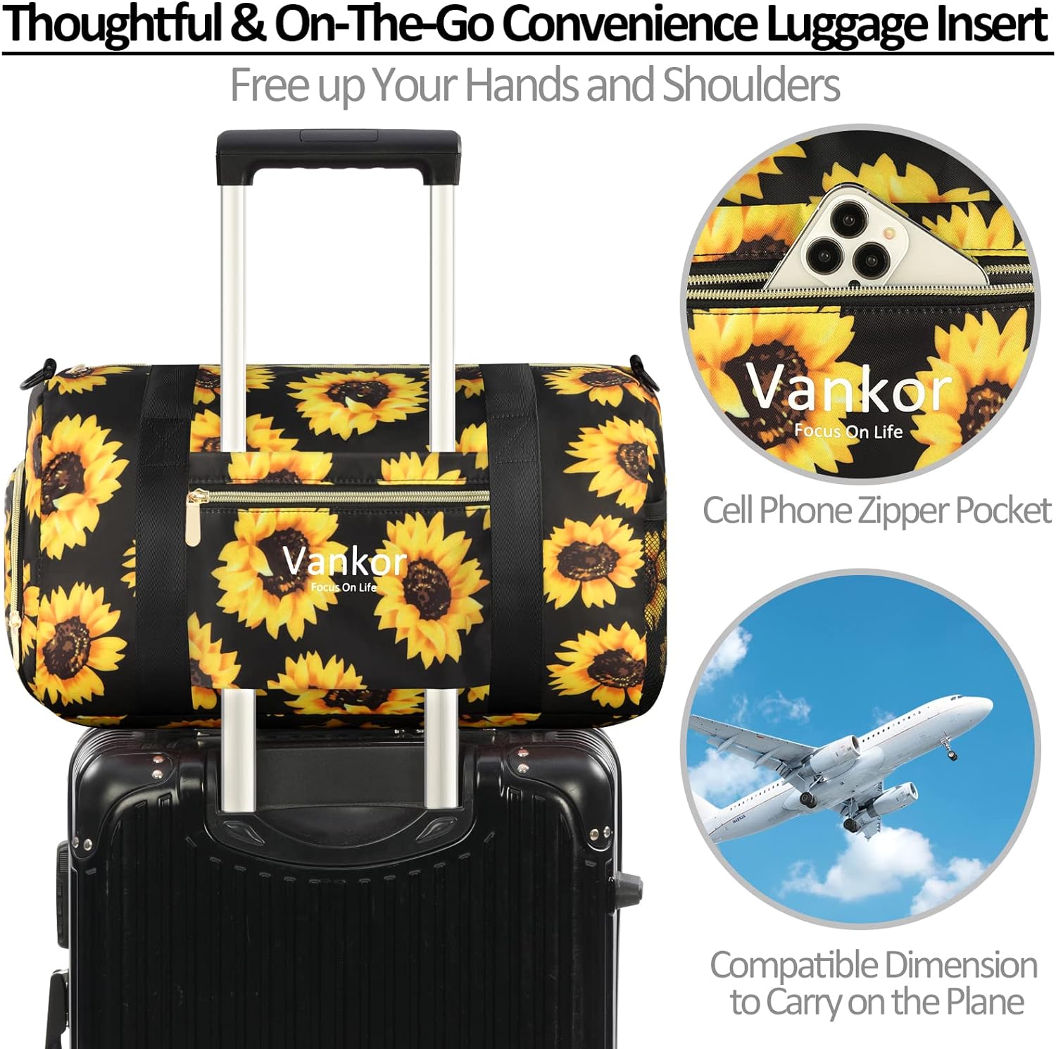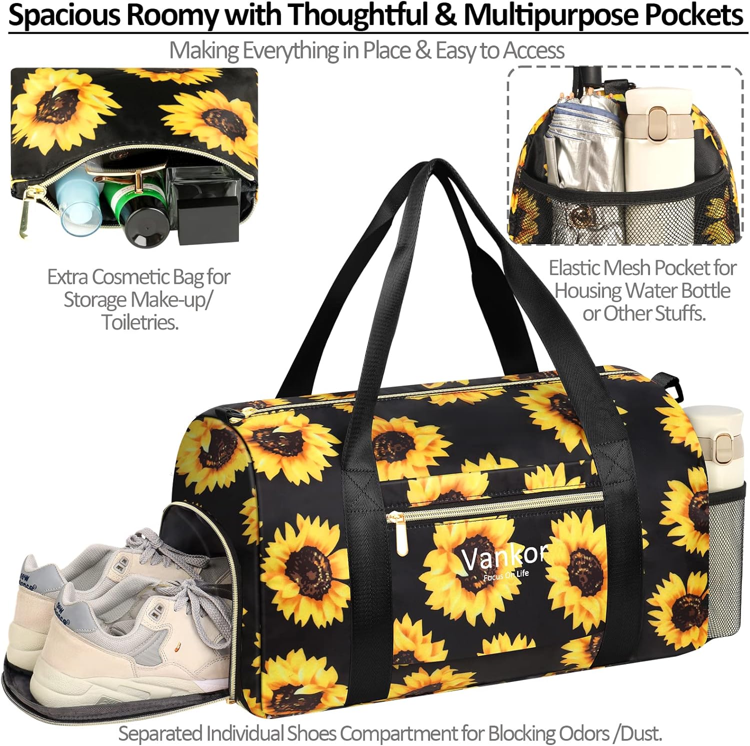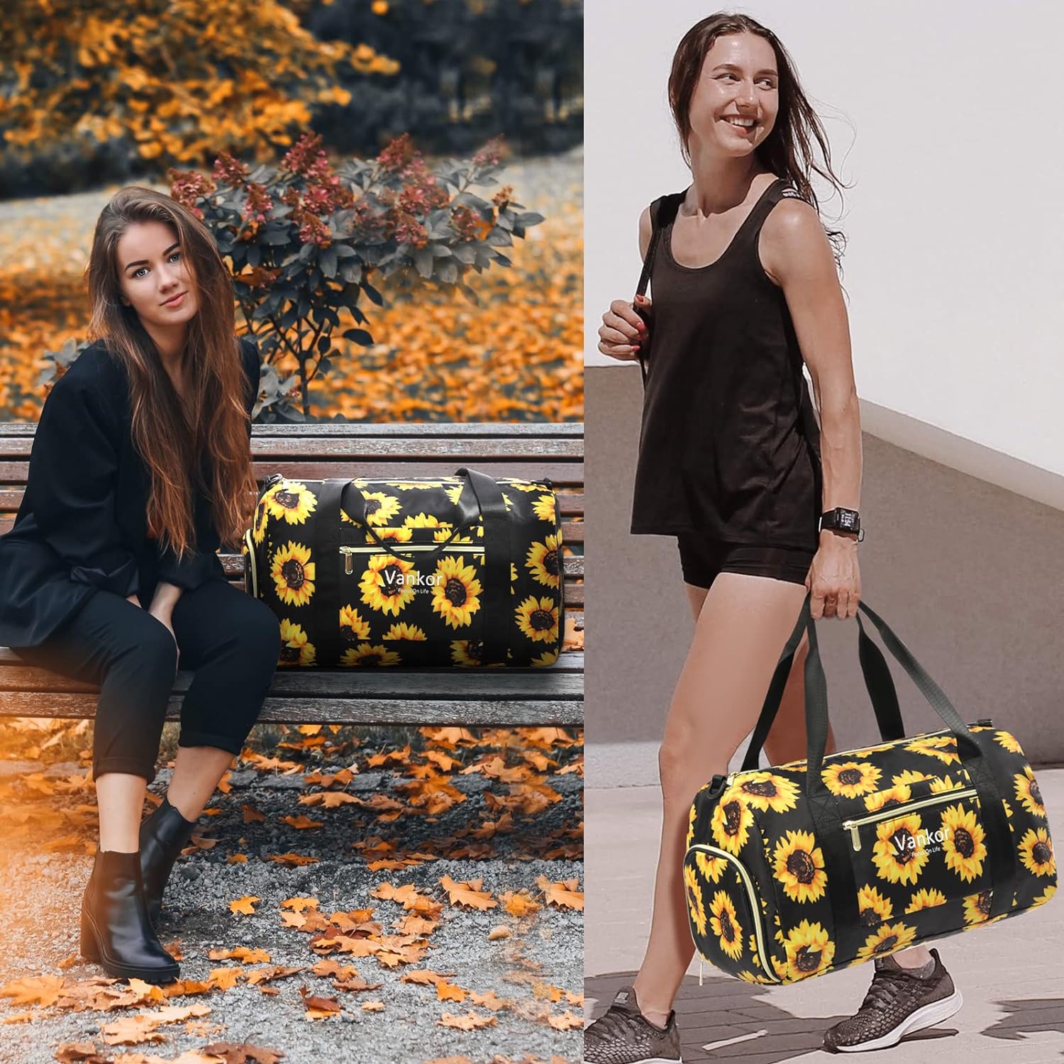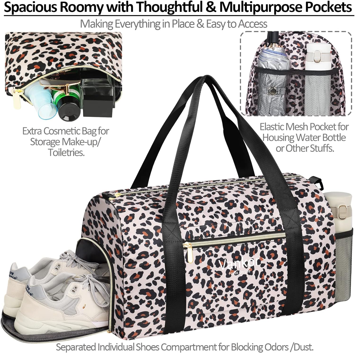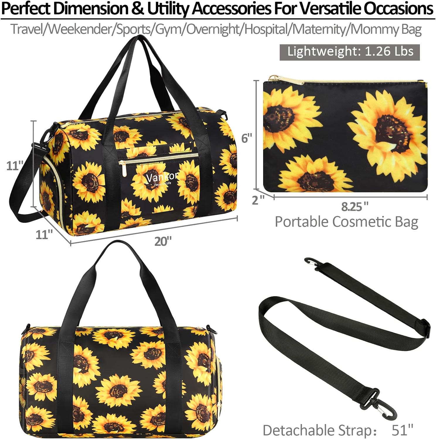• 【LIGHTWEIGHT & PORTABLE】- Vankor's large duffle bag is very stylish and well-designed. These gym tote bags with plenty of storage for an overnight or extended excursion, and weighing just 1.06 lbs, its dimension is 17.5*10*10 Inch, this is an affordable option to add to your bags collection. Choose from colors like Black, Pink, Blue, Camo Black, Sunflower, Leopard Print, Marble, Cow Print. Adding new color collection for your daily life now.