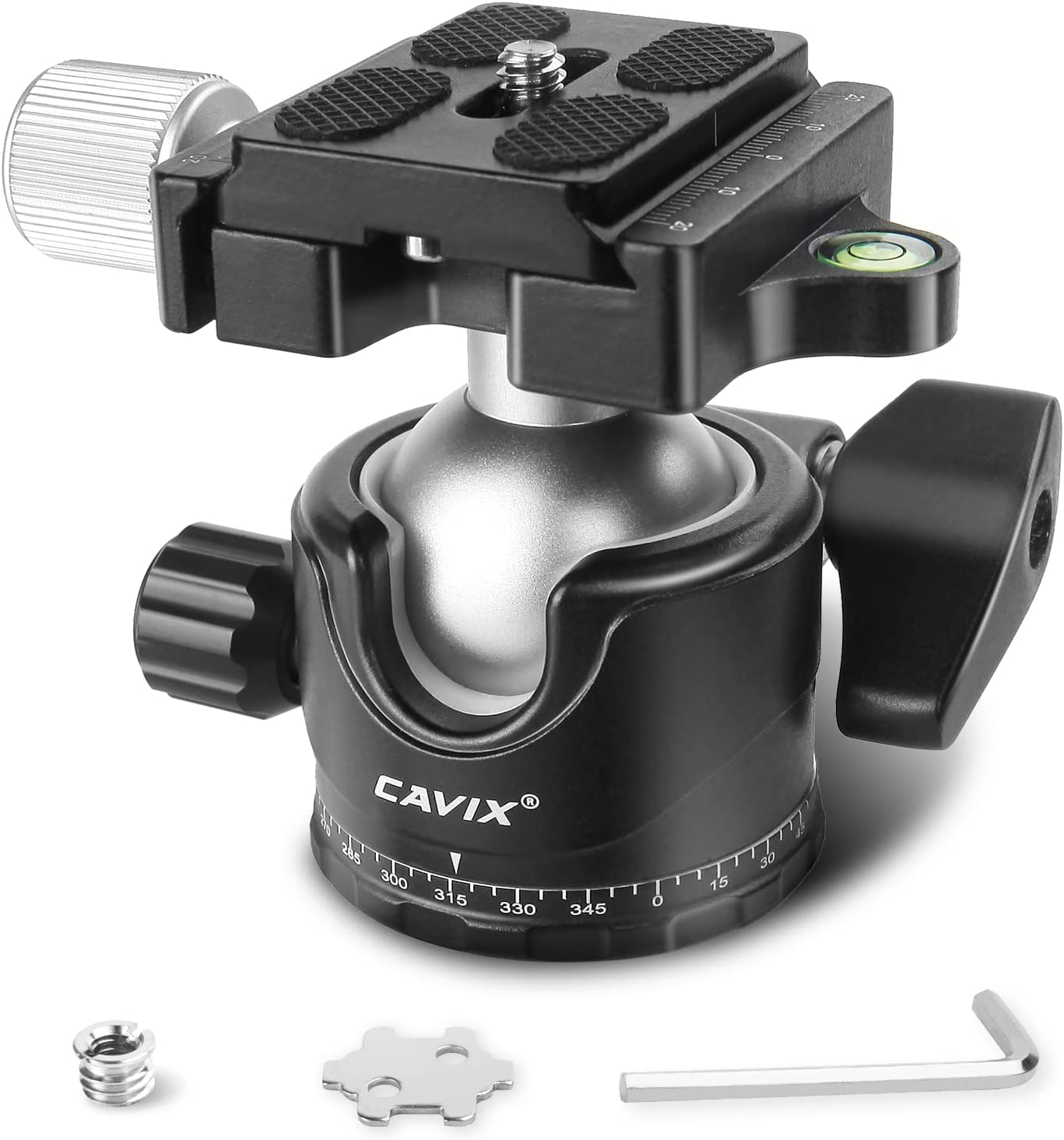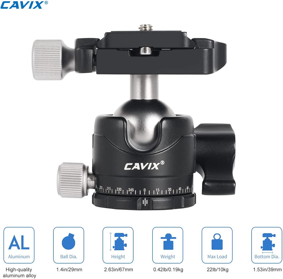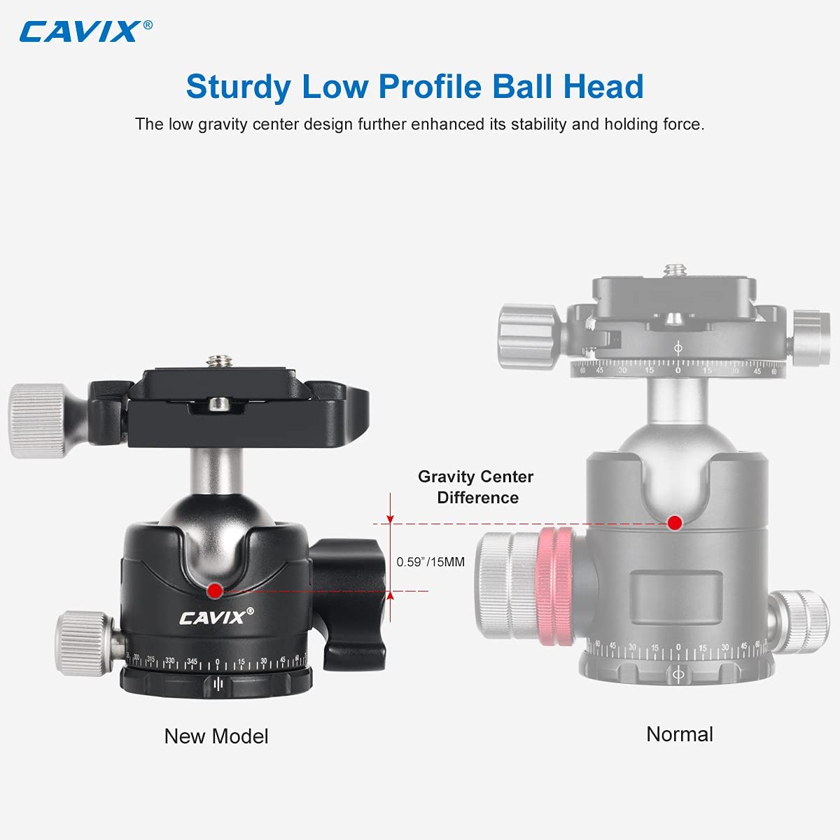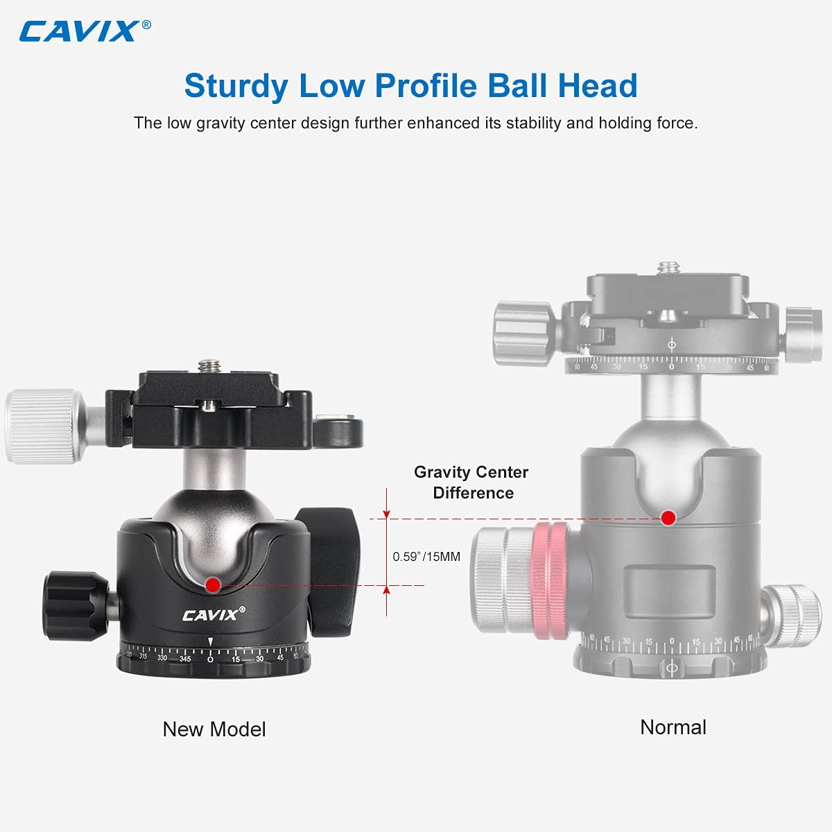 Low Profile Ball Head, CAVIX H-29S Camera Tripod Head Metal Ball Head with Arca Swiss Quick Release Plate Bubble Level Load Capacity 22 Lbs/10kg…