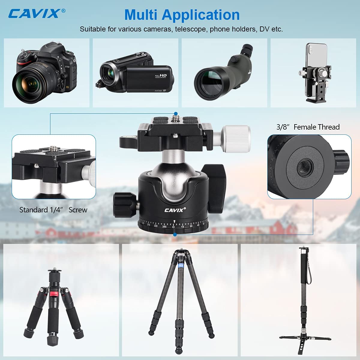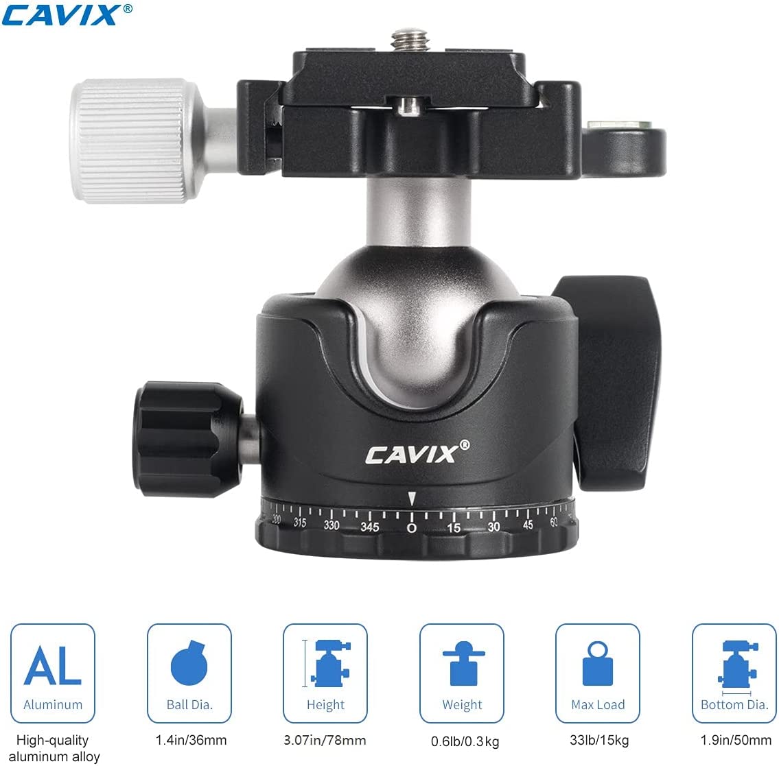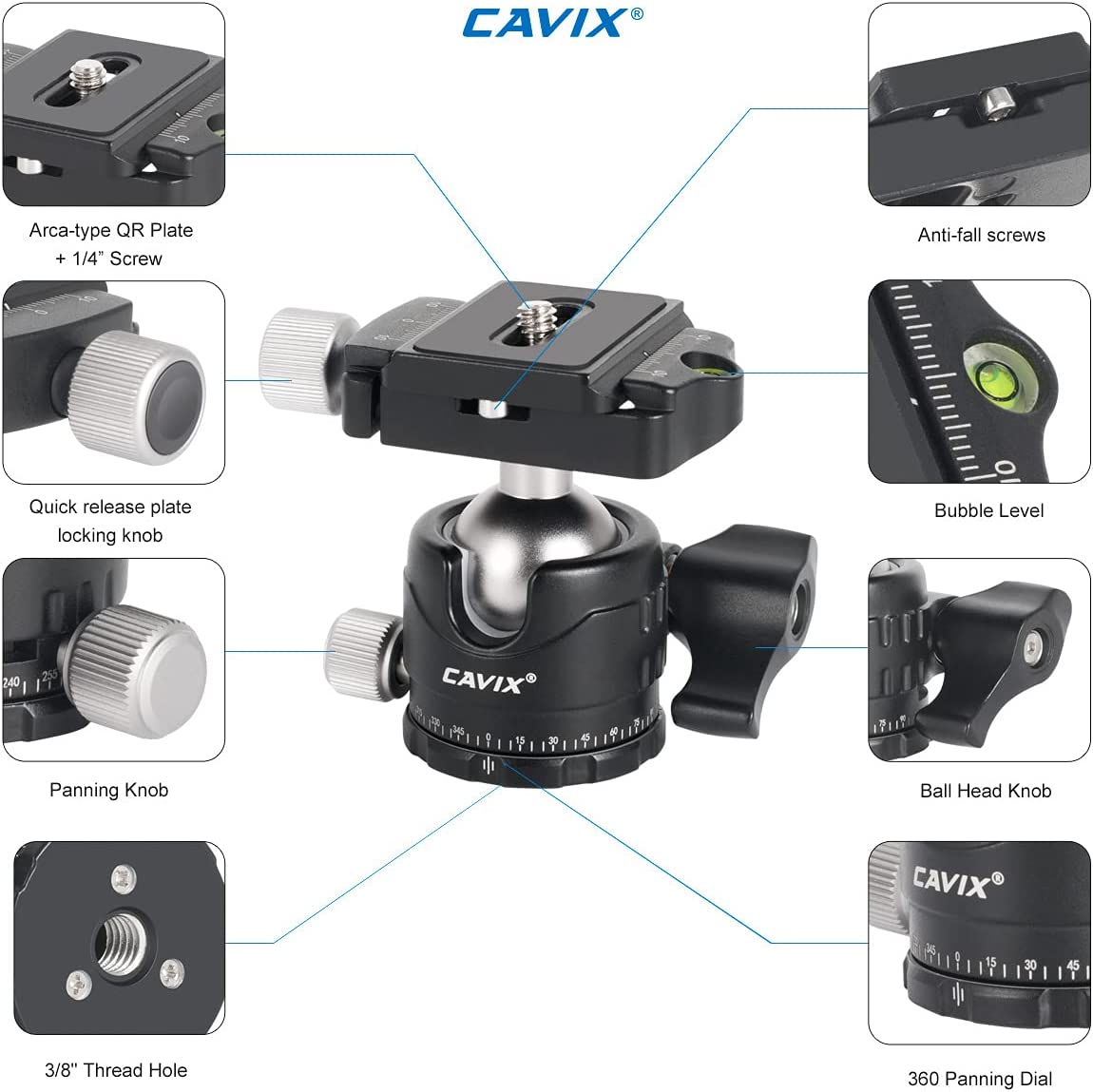 Low Profile Ball Head, CAVIX H-29S Camera Tripod Head Metal Ball Head with Arca Swiss Quick Release Plate Bubble Level Load Capacity 22 Lbs/10kg…