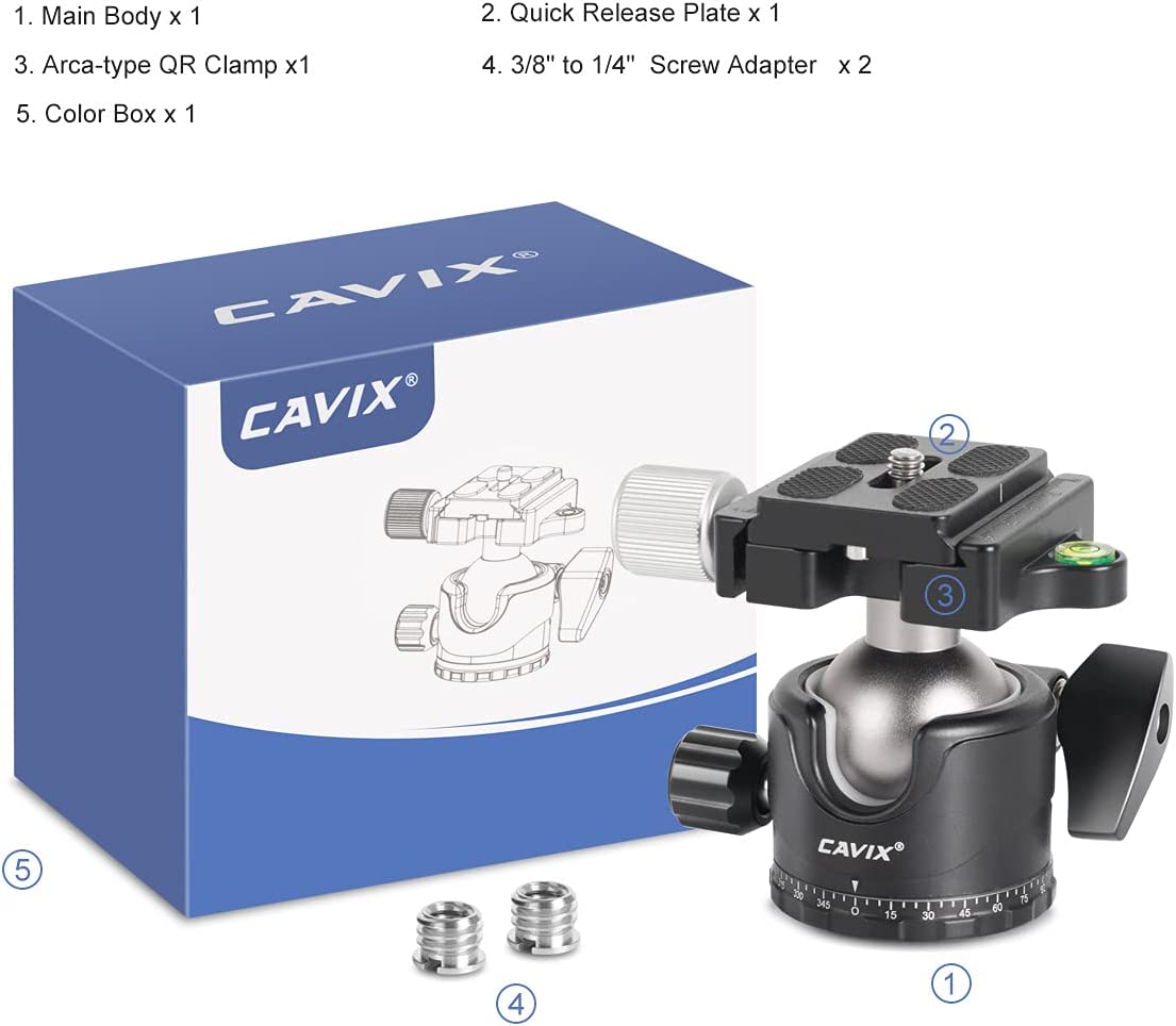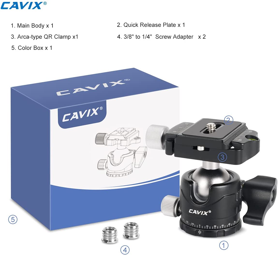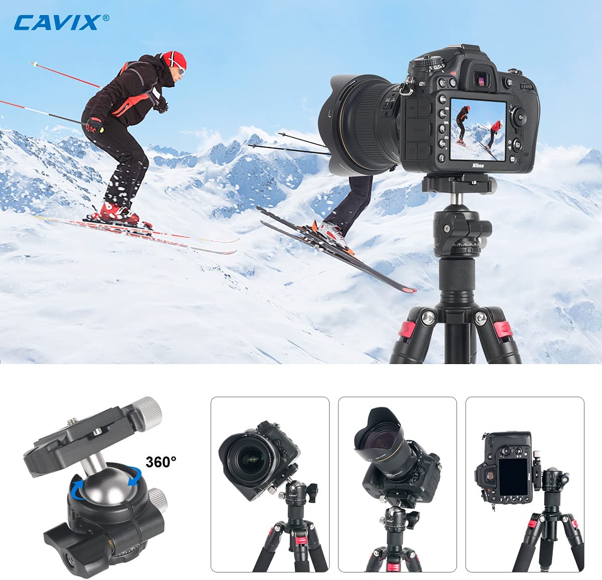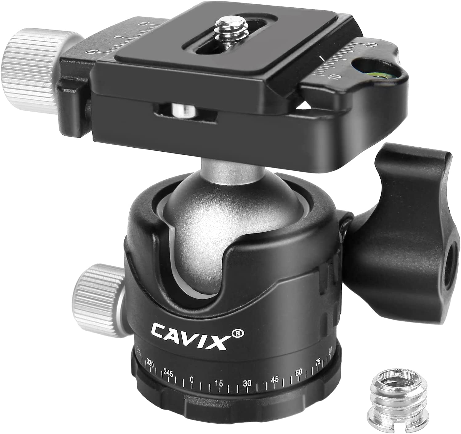 Low Profile Ball Head, CAVIX H-29S Camera Tripod Head Metal Ball Head with Arca Swiss Quick Release Plate Bubble Level Load Capacity 22 Lbs/10kg…
