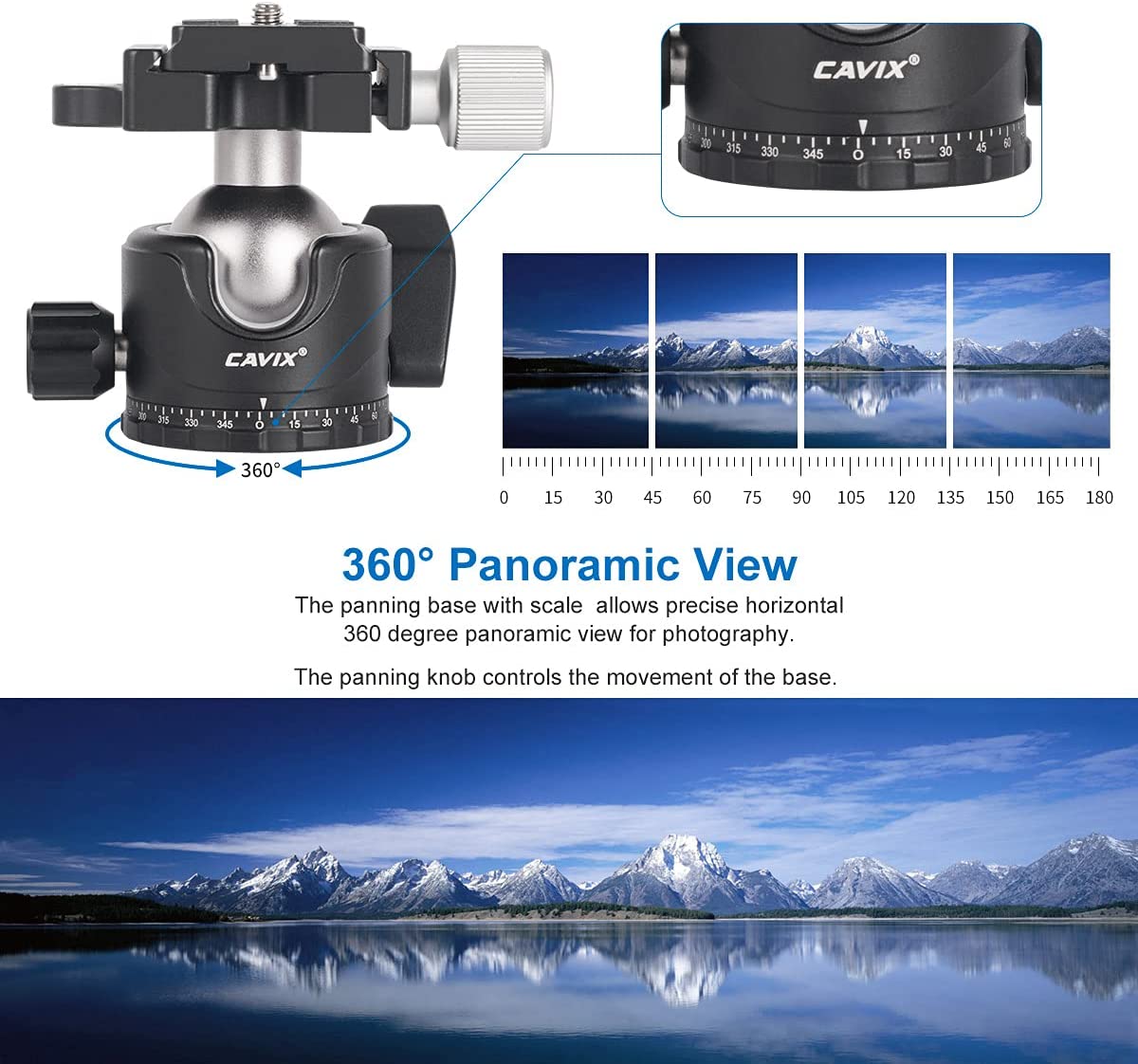 • 【360 Degree Swivel】H-29S ball head for tripod supports 360 degrees horizontal rotation and 90 degrees vertical tilt, meets different shooting angles.