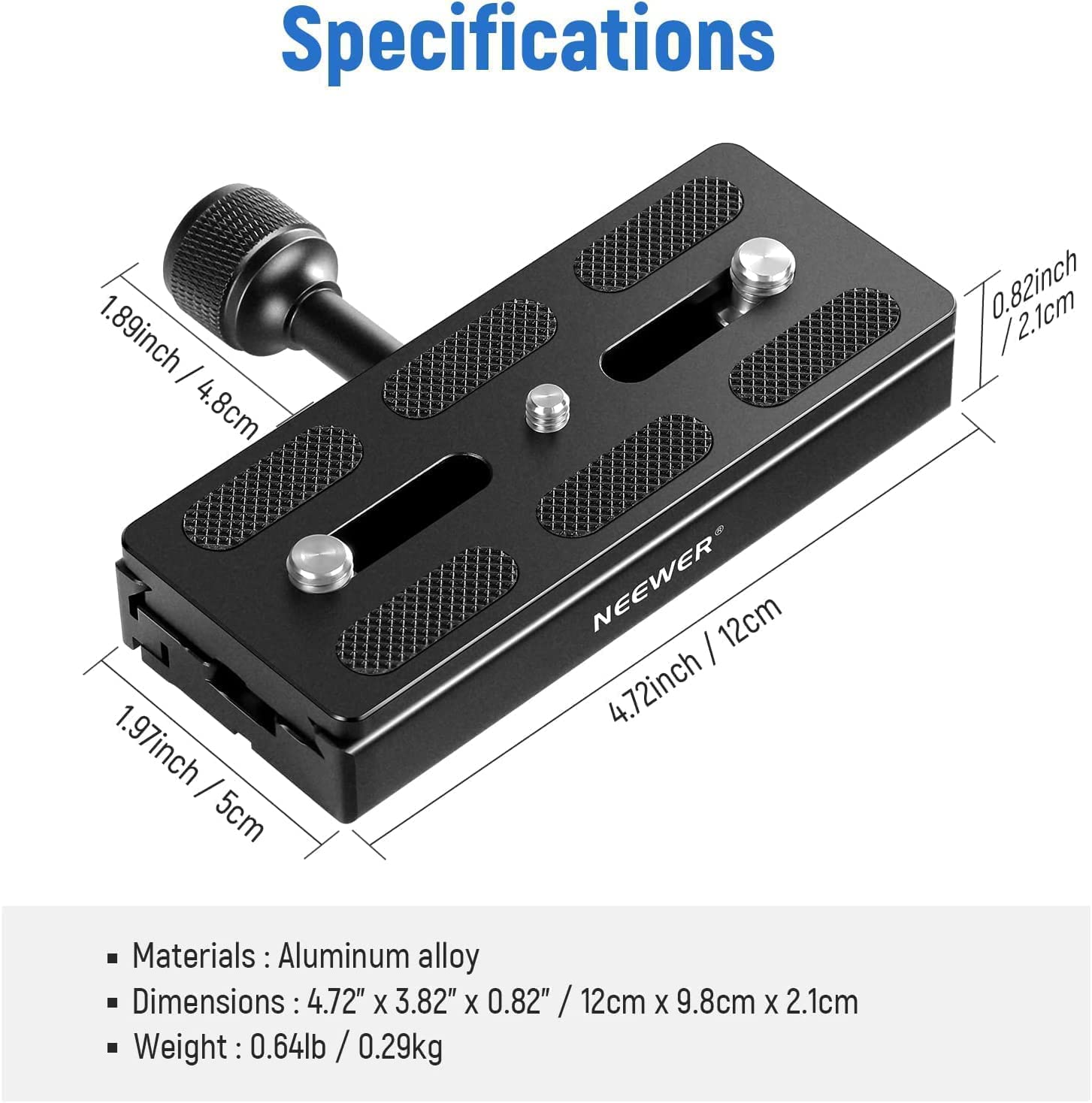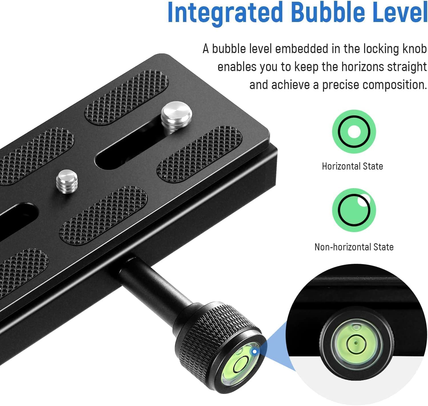 NEEWER Quick Release Plate with Clamp Adapter Set, 120mm QR Plate with Clamp, 3/8"&1/4" Screw, Bubble Level, 3/8” to 1/4” Screw Adapter, Compatible with Arca Swiss Manfrotto Tripod Monopod Ball Head