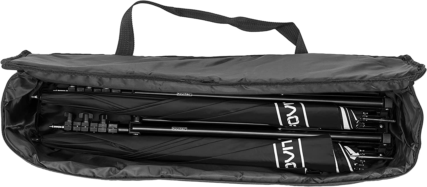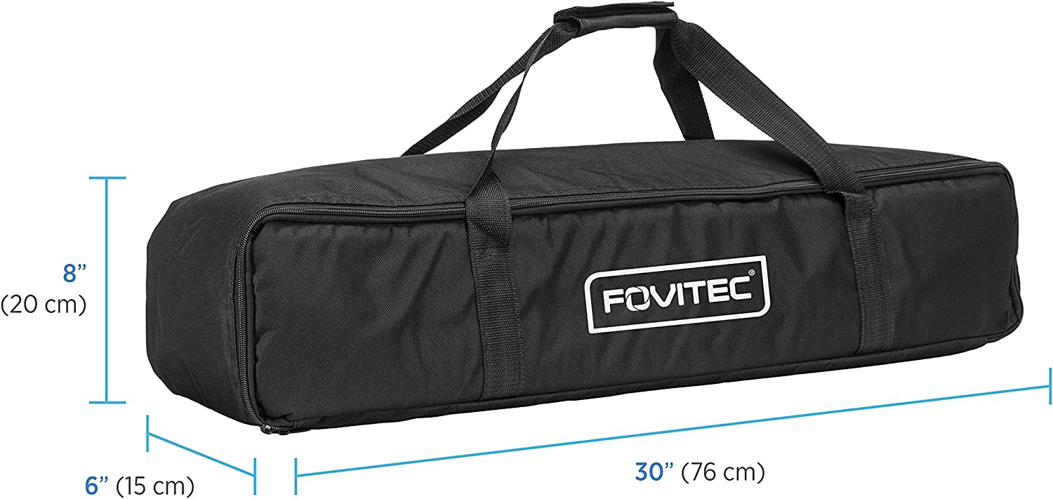 Product Overview: The Fovitec lighting equipment carrying bag is the ideal case for your traveling lighting studio. This zippered bag is great for transporting light stands, umbrellas, and other accessories. This zipper bag is made of a durable material, is light weight, and very convenient to carry. This bag makes it possible to pack up your studio anytime, anywhere. The foam padded walls help protect your equipment from becoming damage. Technical Specs: Material: Nylon Dimensions: 30in x 8in x 6in Box Contents: 1x carrying bag