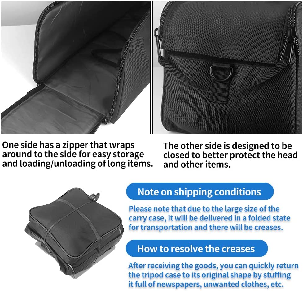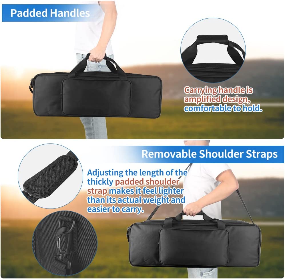 • ☀NYLON MATERIAL: Tripod carrying case is made of heavy-duty and durable nylon material, which can carry heavy equipment strongly. Water-resistant materials protect your equipment from unexpected weather.