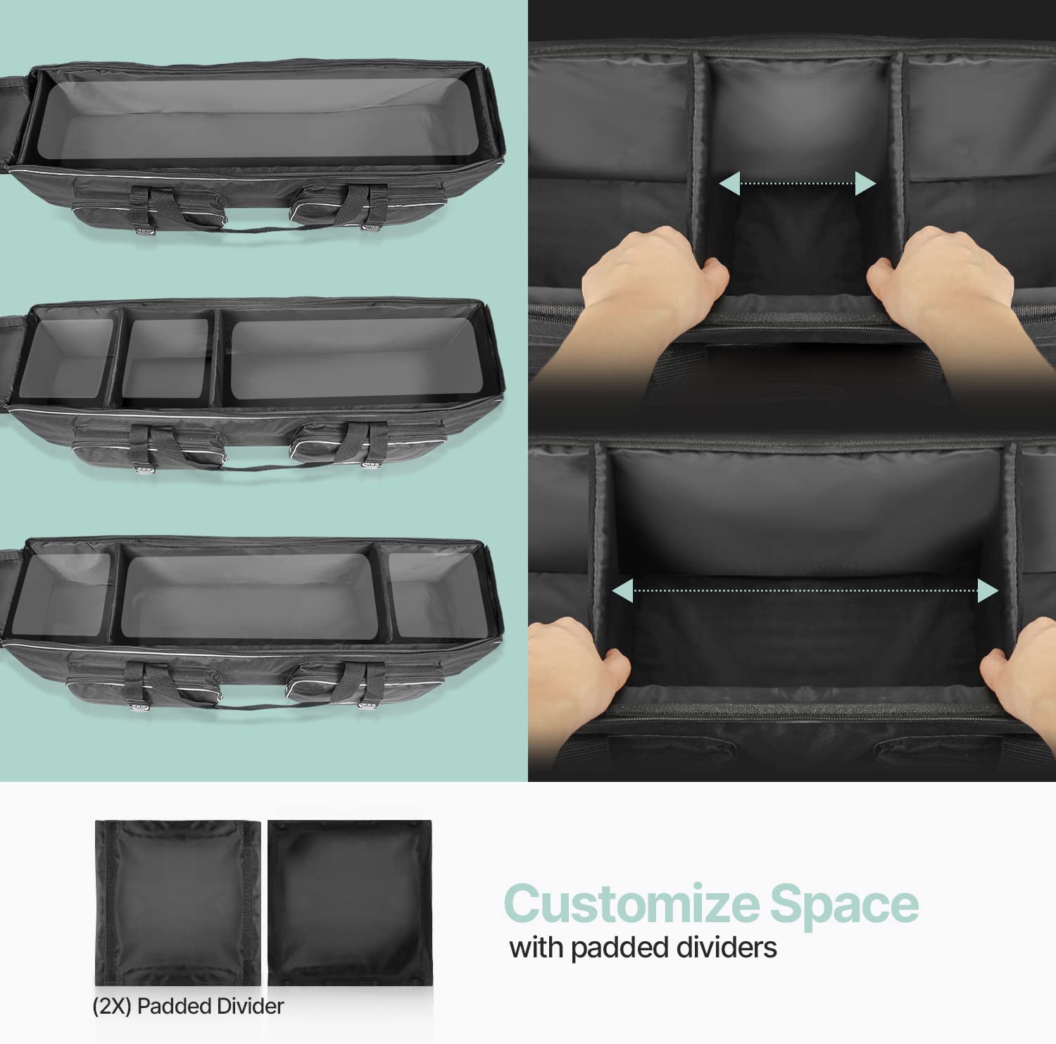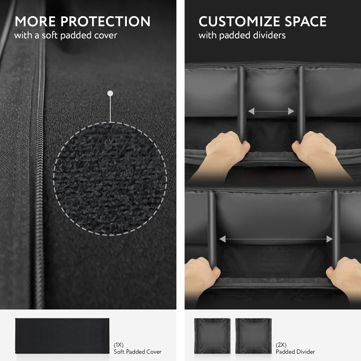 • ✨ Lightweight and foldable, 2 padded dividers inside.