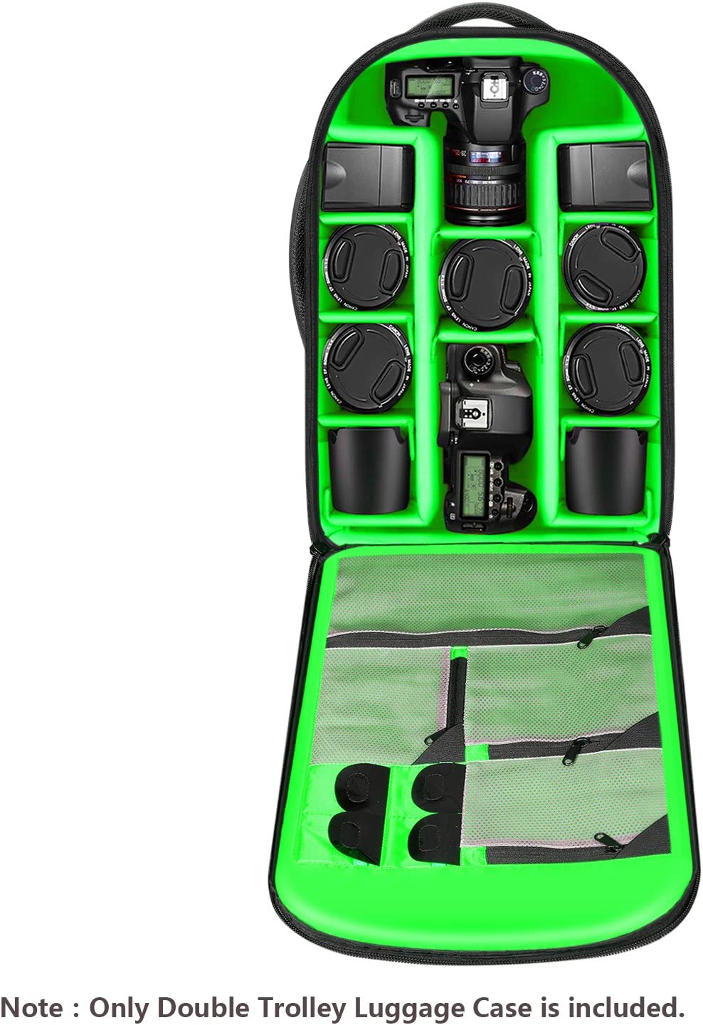 • LARGE CAPACITY: Can load a full DSLR body with lens attached; 11 additional configurable compartments for lenses, chargers, batteries, filters, and more