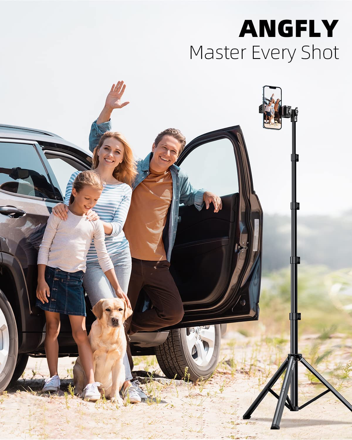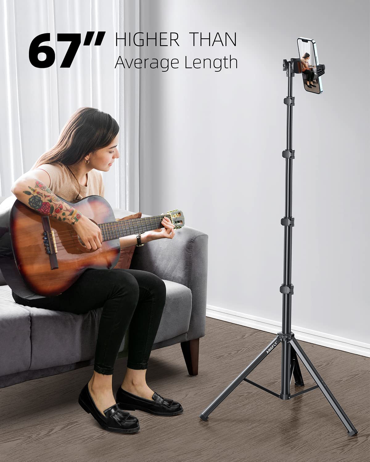 ANGFLY 67" Phone Tripod & Selfie Stick, Extendable Cell iPhone Tripod Stand with Remote and Phone Holder, Tripod for iPhone Compatible with iPhone 14 Pro Max 13 12/Android/Camera