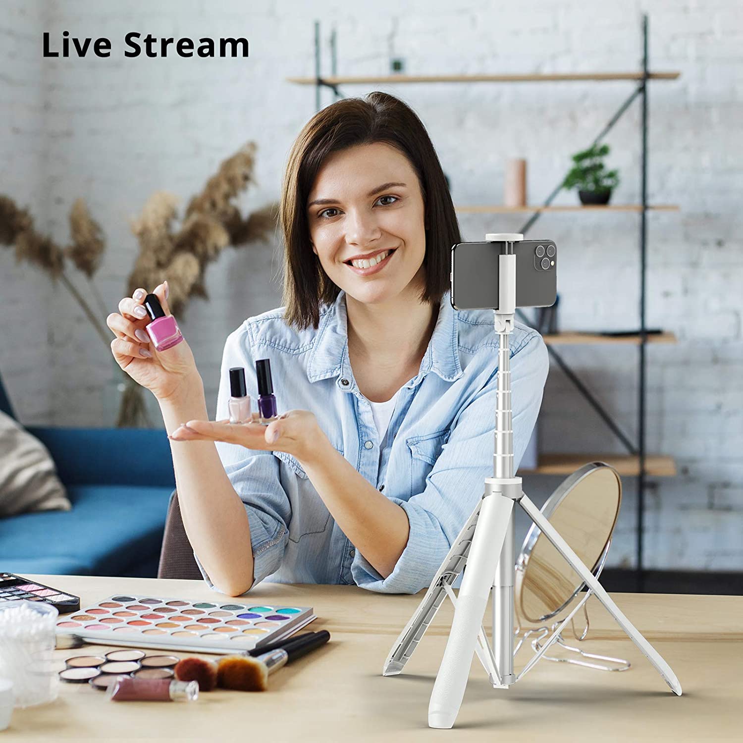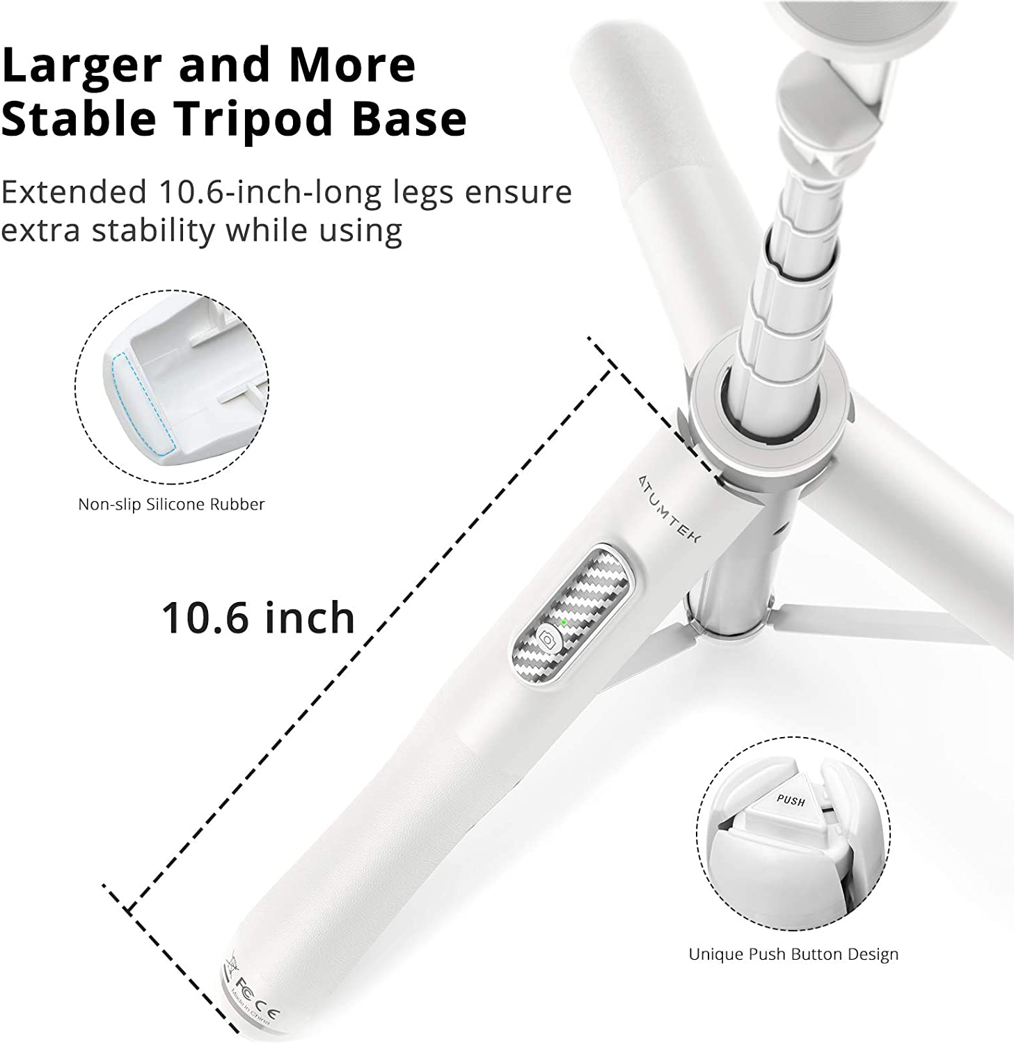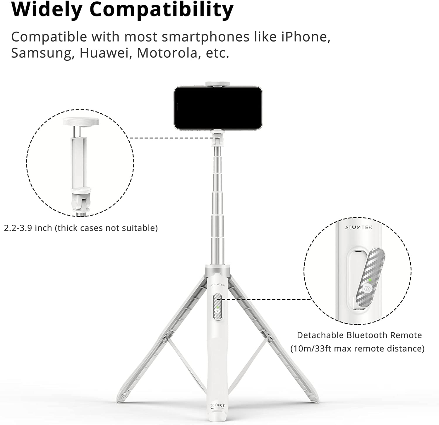 ATUMTEK 51" Selfie Stick Tripod, All in One Extendable Phone Tripod Stand with Bluetooth Remote 360° Rotation for iPhone and Android Phone Selfies, Video Recording, Vlogging, Live Streaming, White