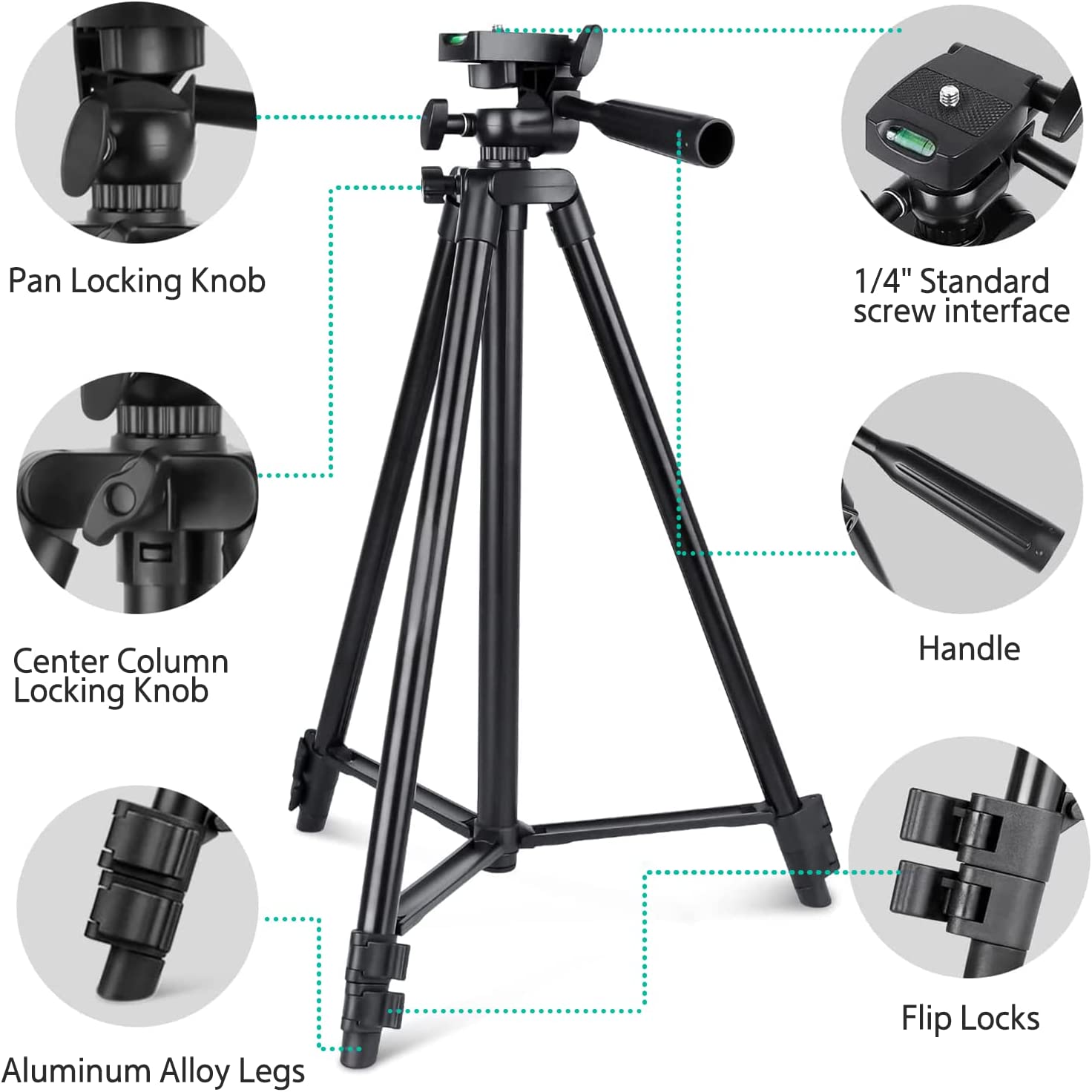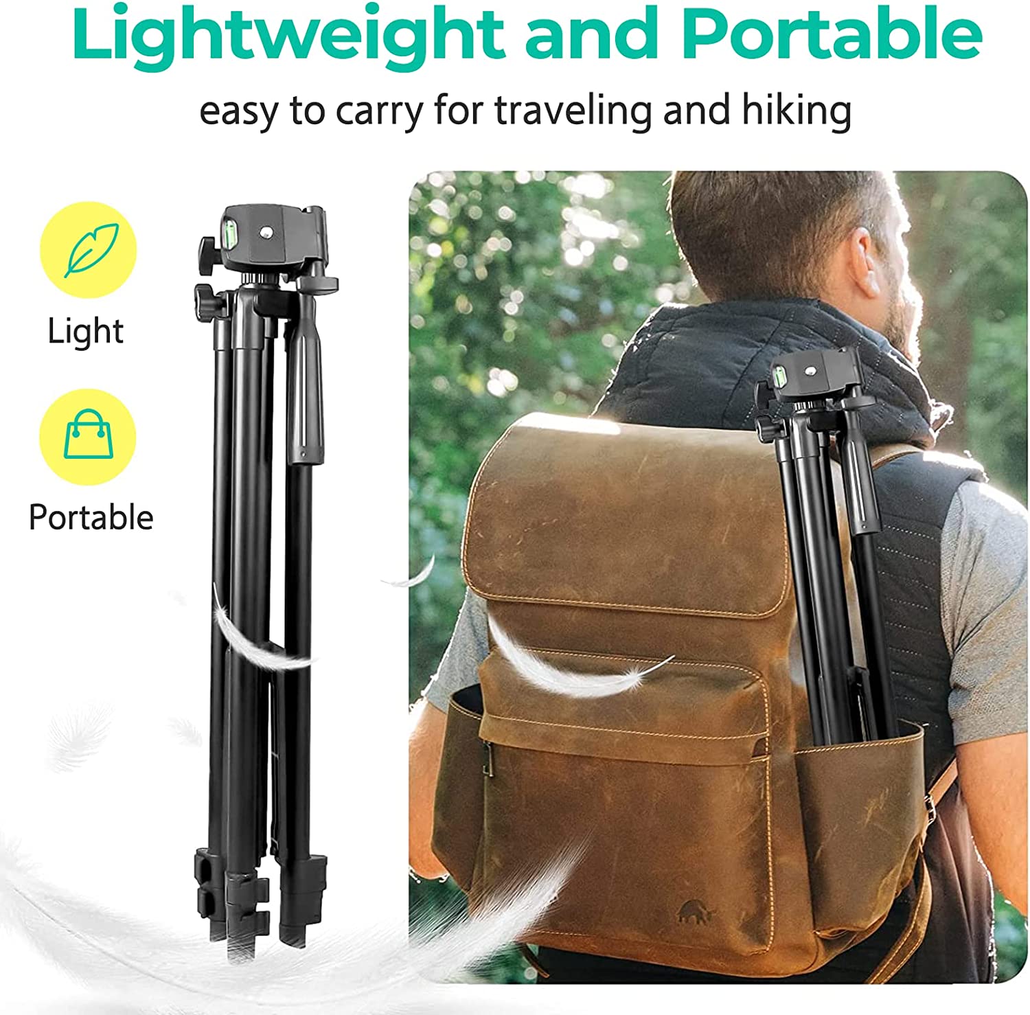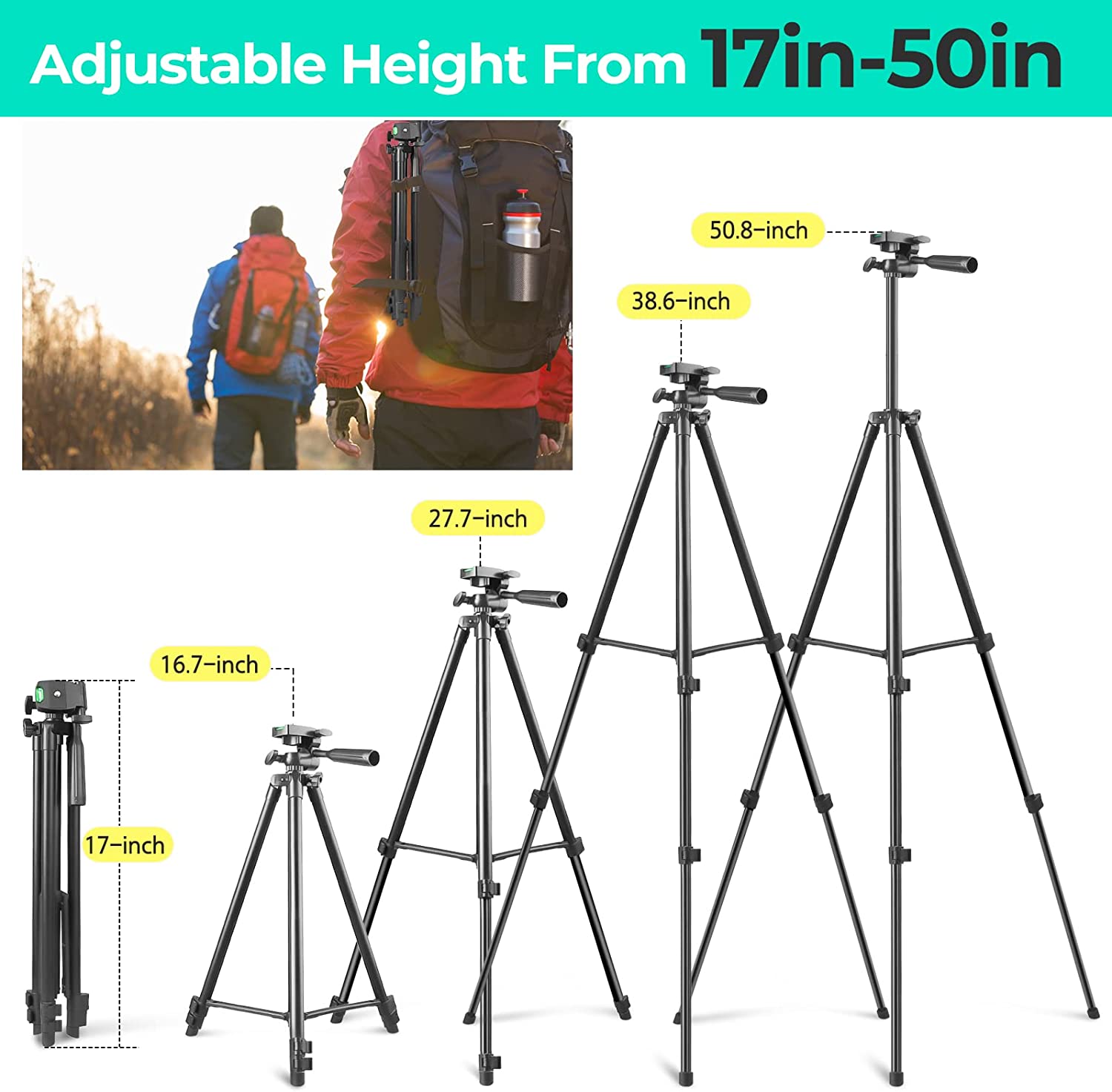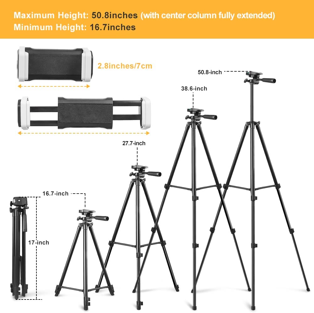 • ②【Lightweight & Portable】Weight only 497g, height varies from 16inches to 50inches in a short time. Suitable for lectures, classroom presentations, tournaments, trips, vlogging, selfies, portrait or landscape photographing, Facebook Youtube Twitch live streaming, Facetime, etc.