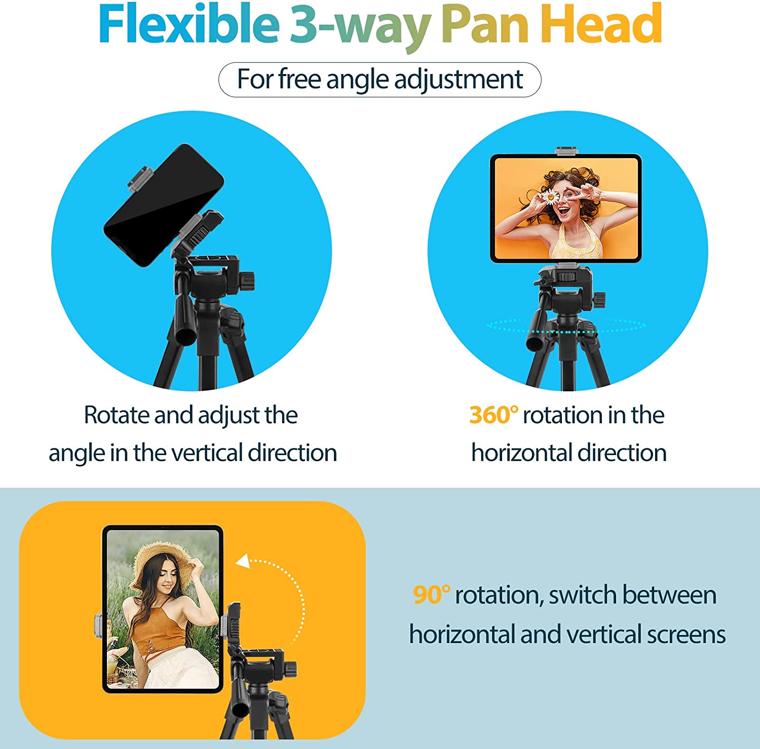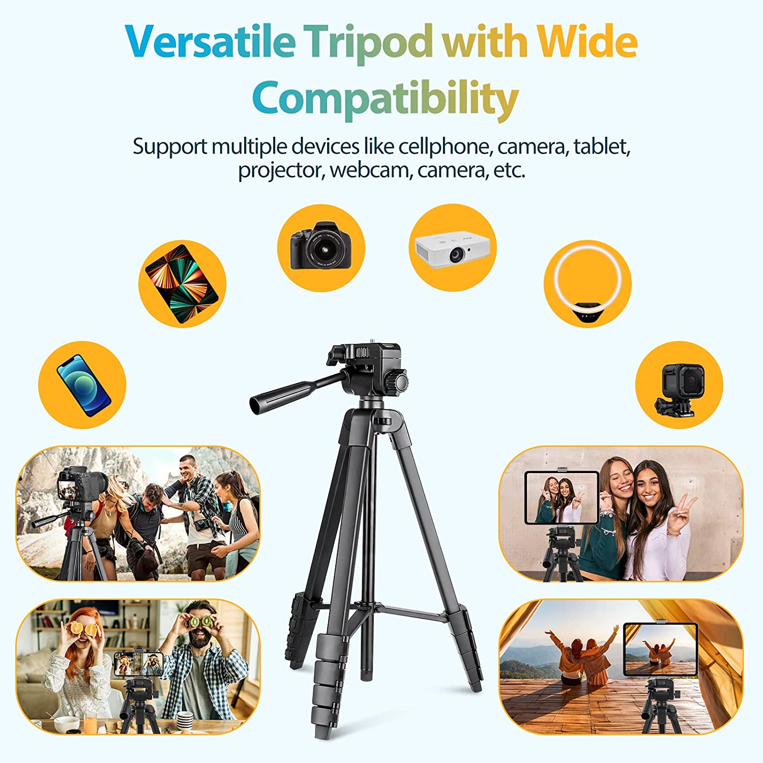 • 【Multi-functional Tripod Kit】Aureday's versatile tripod performs well with a wide range of devices, including smartphones, point-and-shoot cameras, and other small cameras. Additionally, the tripod has a sturdy tablet Holder that lets you mount a tablet to the tripod. Ideal for photographers, vloggers, YouTube, family gatherings, and live streaming.