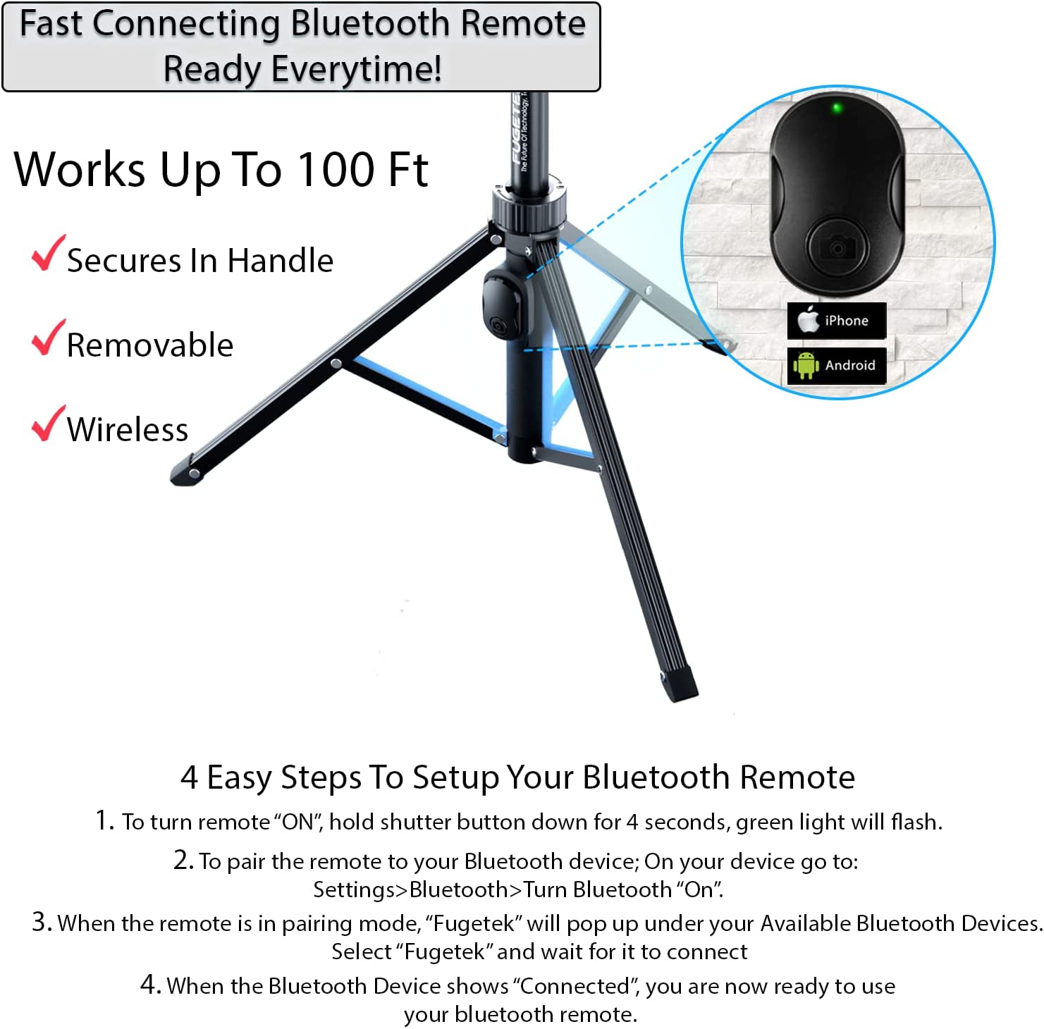 • REMOVABLE BLUETOOTH REMOTE UPGRADED FOR 2022: Take Photos & Videos Up To 100 Feet Away, An Industry High. NEW Simple One Button Operation. iPhone & Android Compatible. Remote Can Be Pressed 100,000 Times = (100,000 photos). Remote Standby Time Is 3-5 Years. Remote Mounts In Handle (Competition's Remote Does Not Mount, Competition's Remote Is Easy To Lose)
