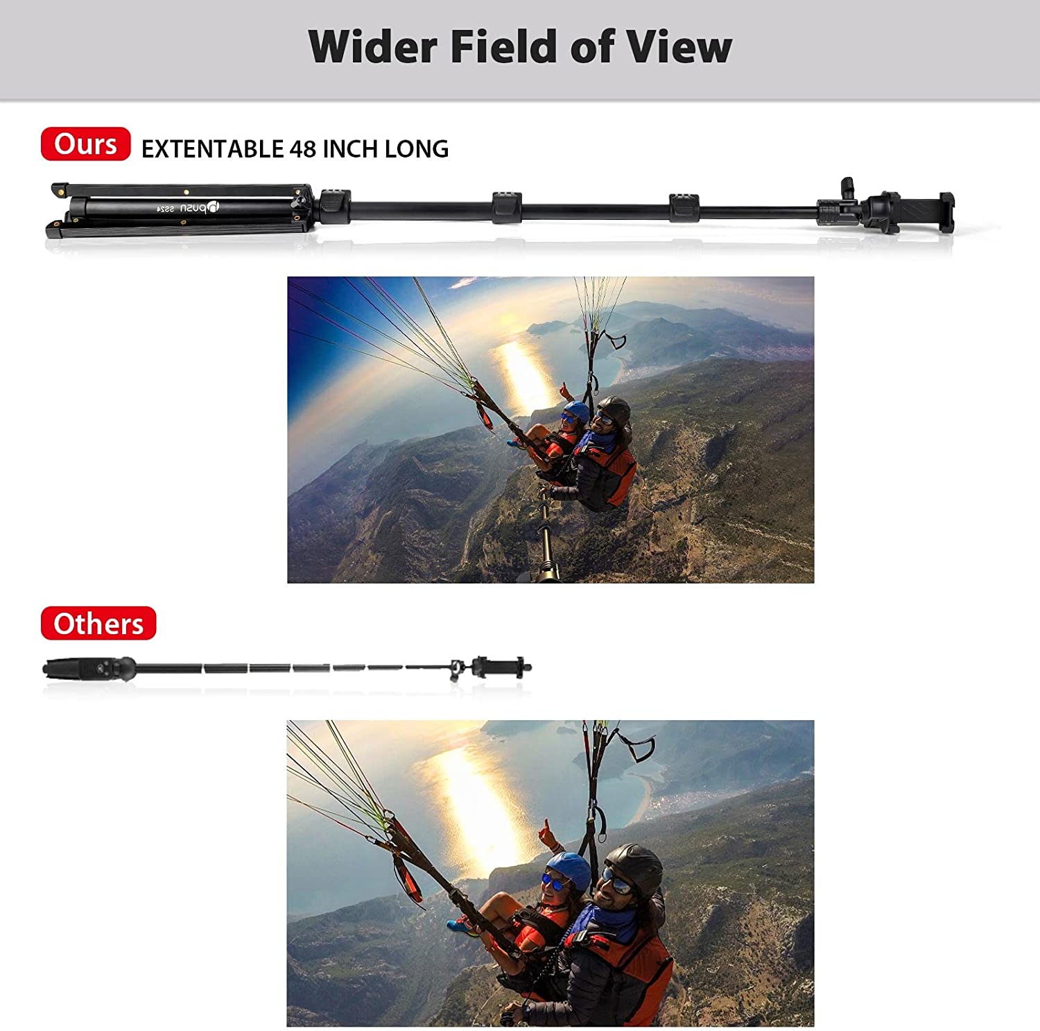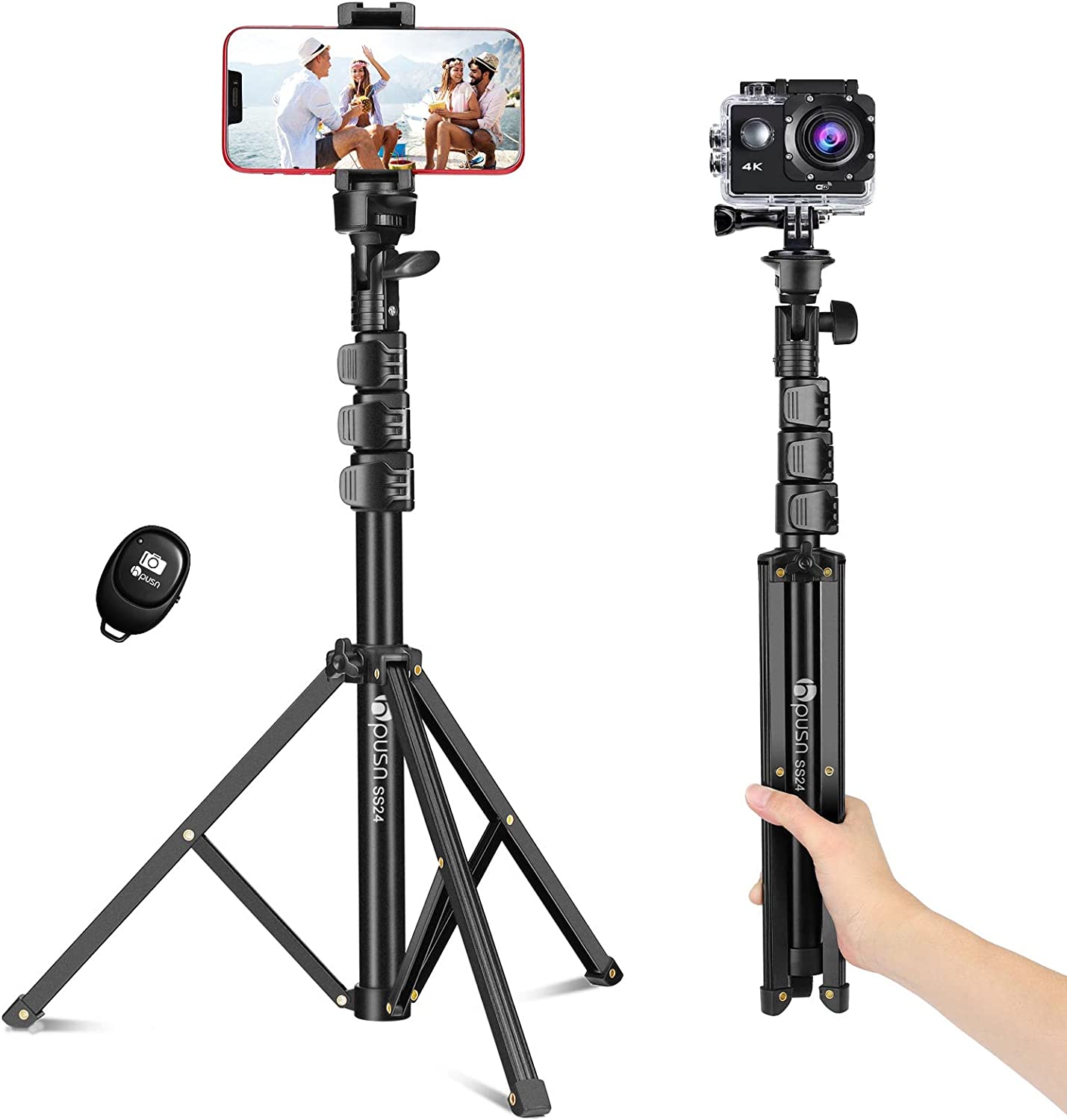 • 【All-in-One Selfie Stick & Tripod】Phone tripod is supporting both portrait and landscape shooting. It can even be used as a desktop webcam stand or video tripod, which is perfect for selfies, group photos, vlogging, YouTube videos, Facebook Live, Instagram, live streaming