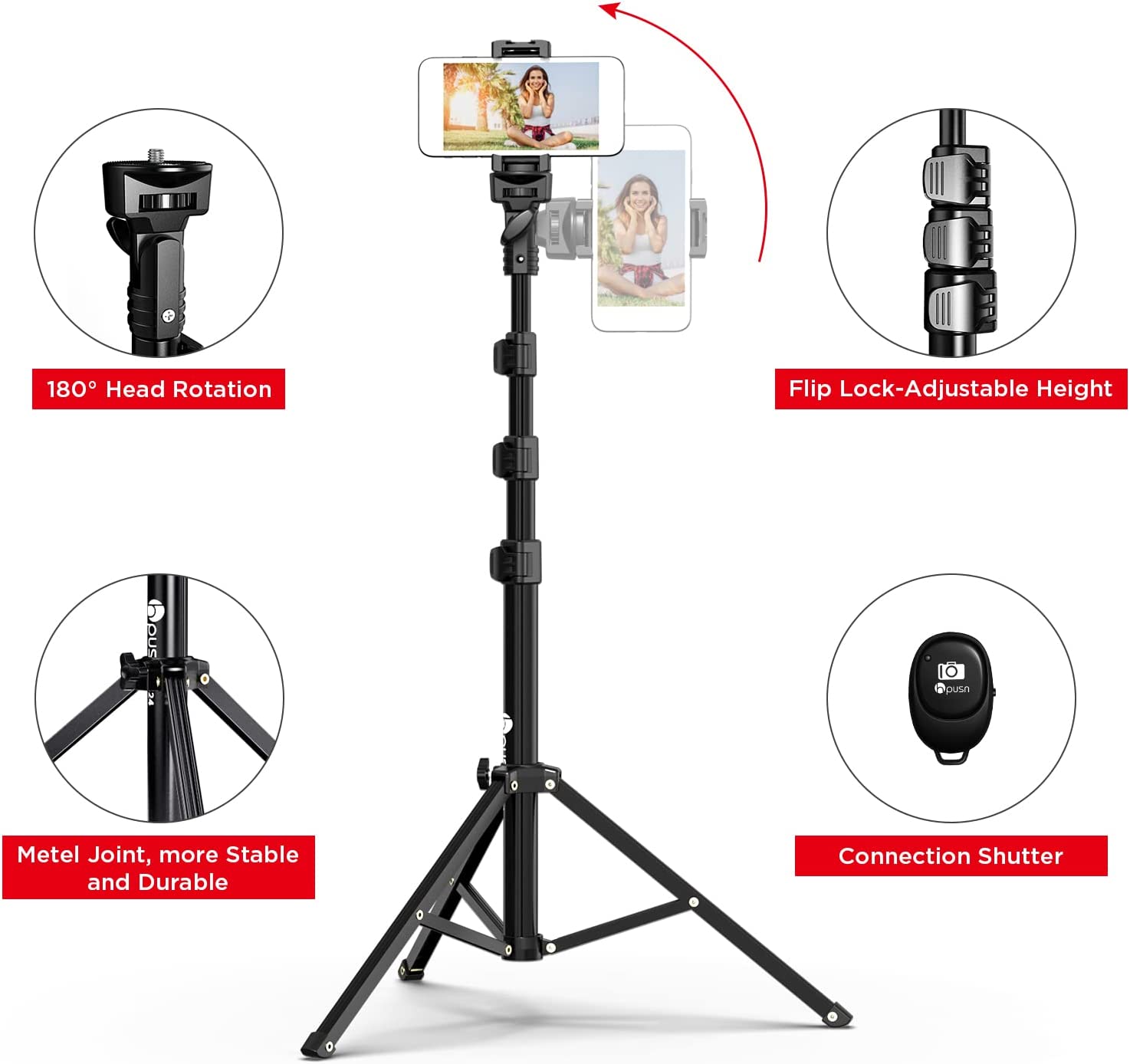 Hpusn Phone Tripod Stand: 48 inches Extendable Cell Phone Tripod, Selfie Stick for iPhone & Android Phone, Heavy Duty Aluminum & Lightweight