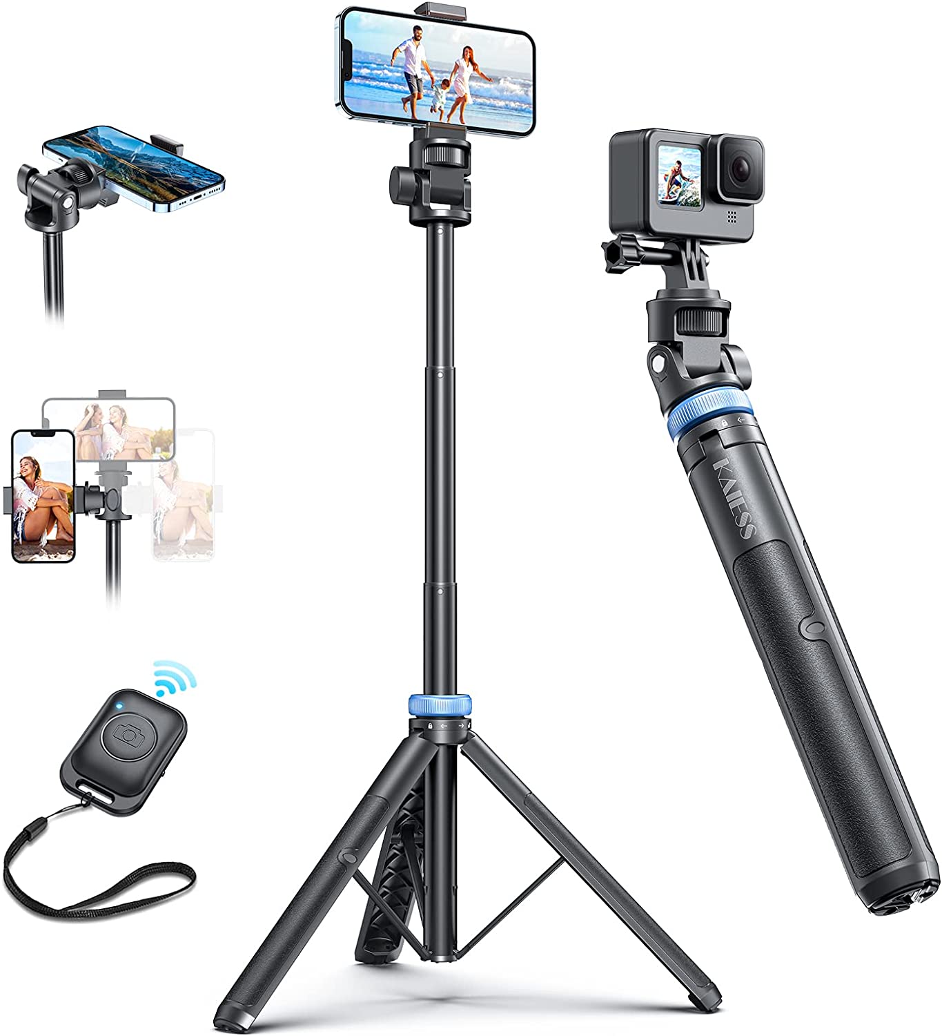 [Newest] 62" Selfie Stick Tripod with Remote - Kaiess Tripod for iPhone, High Strength Legs & Extendable Tube Tripod Stand, Fit for iPhone 14 Pro Max/14 Pro/13 Pro Max/Samsung S22/Camera/GoPro