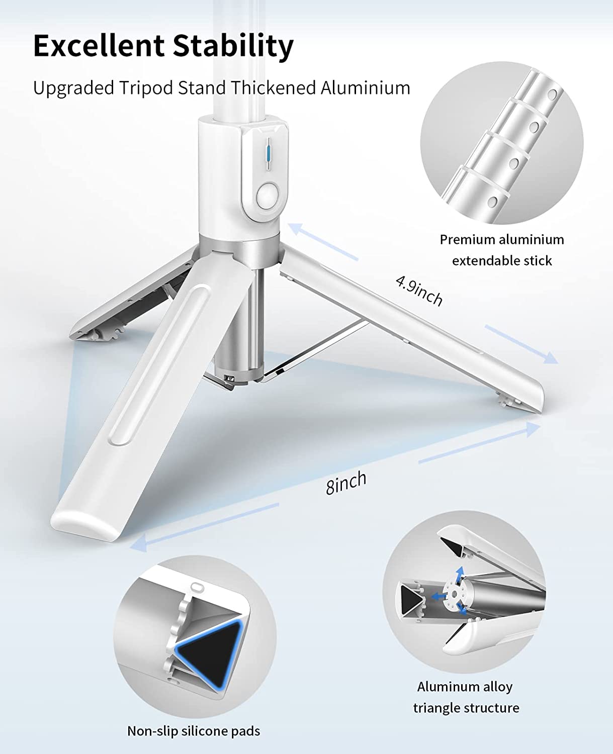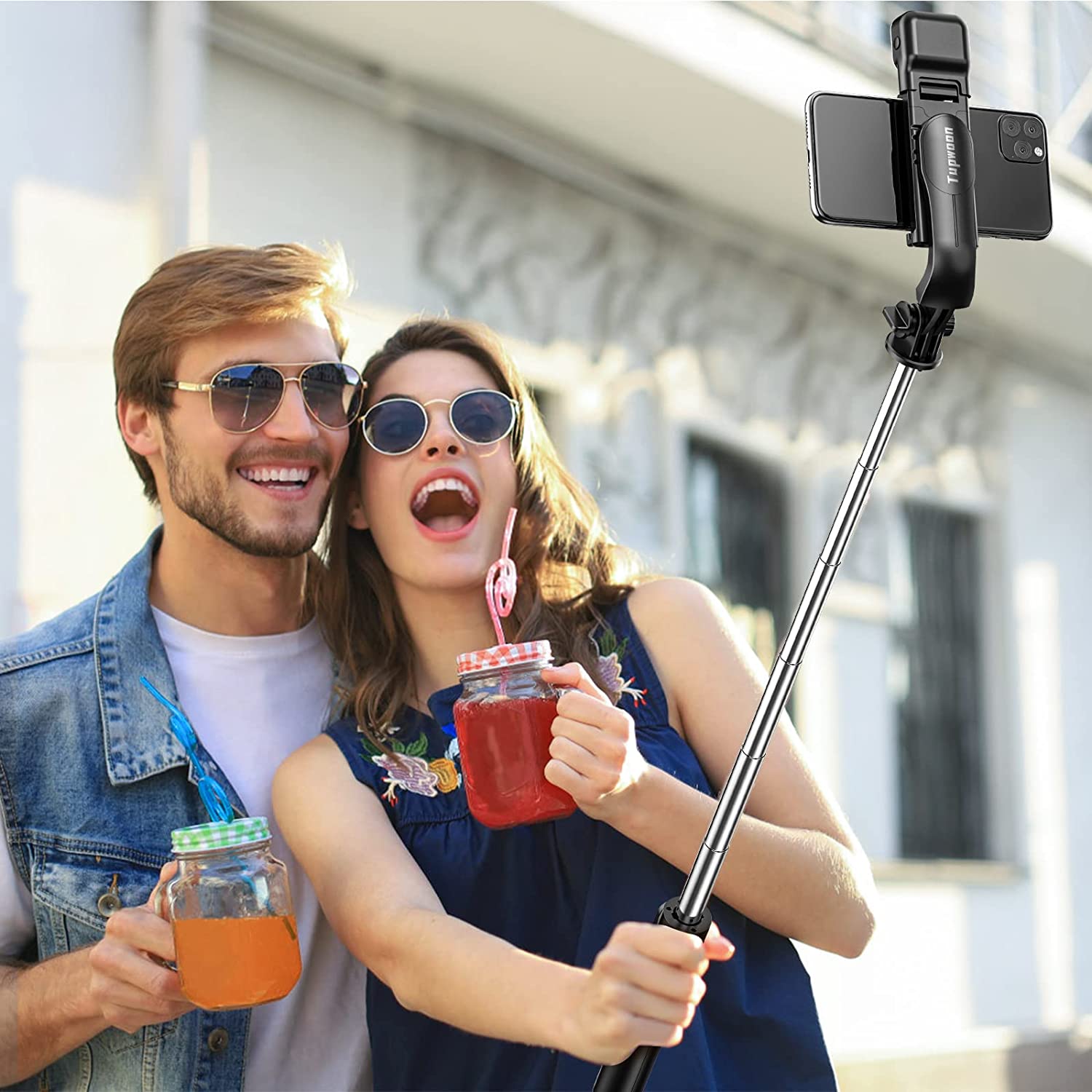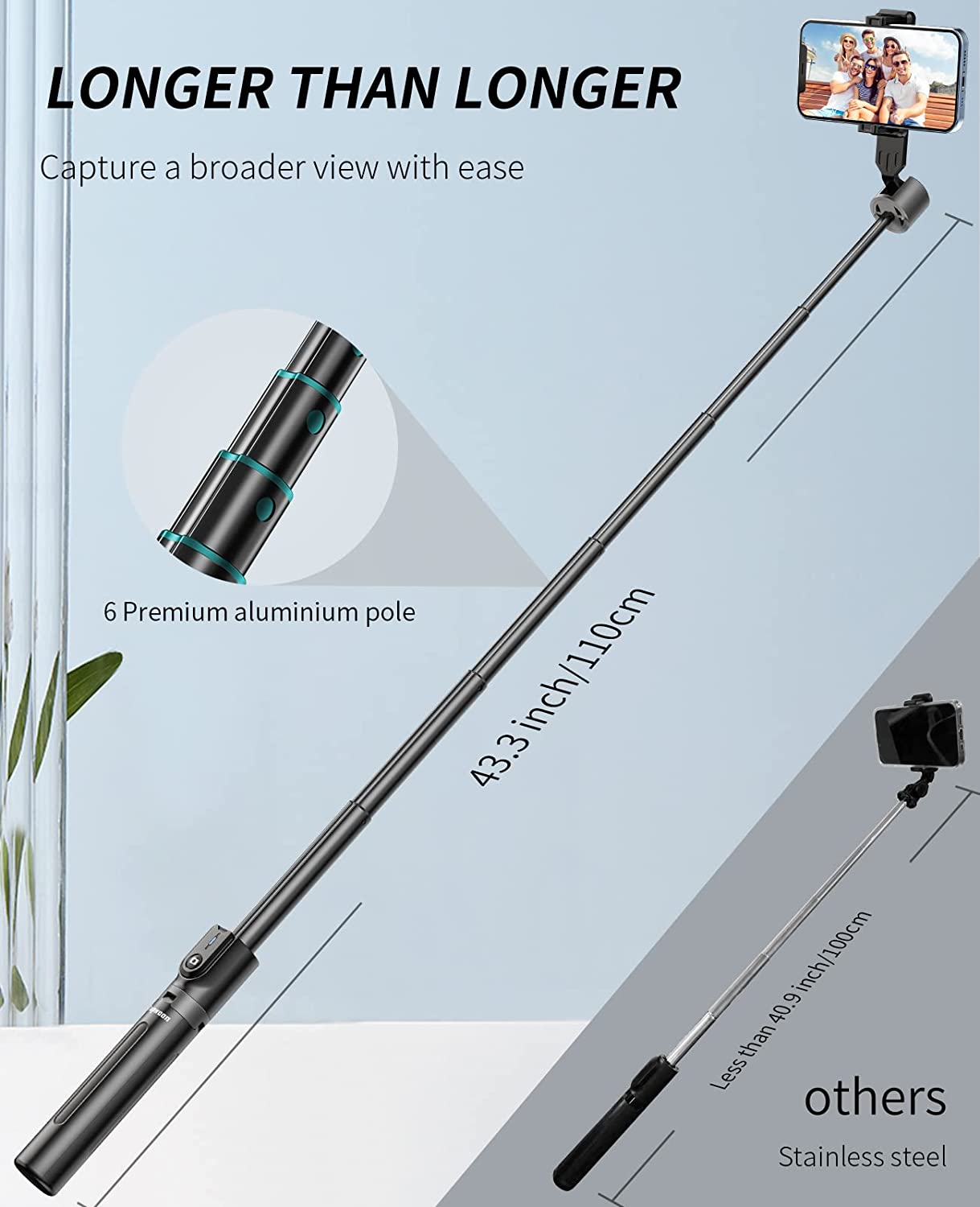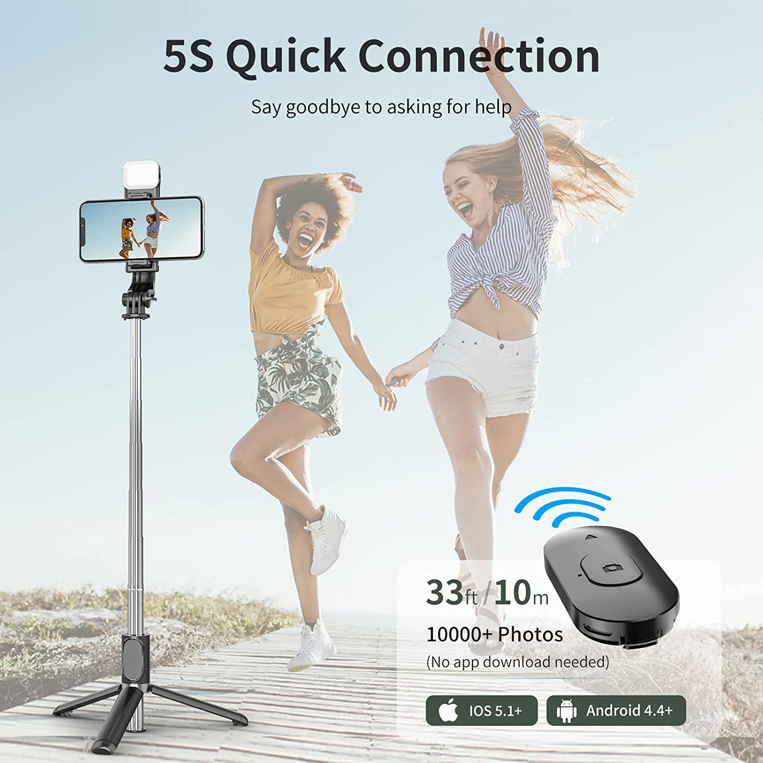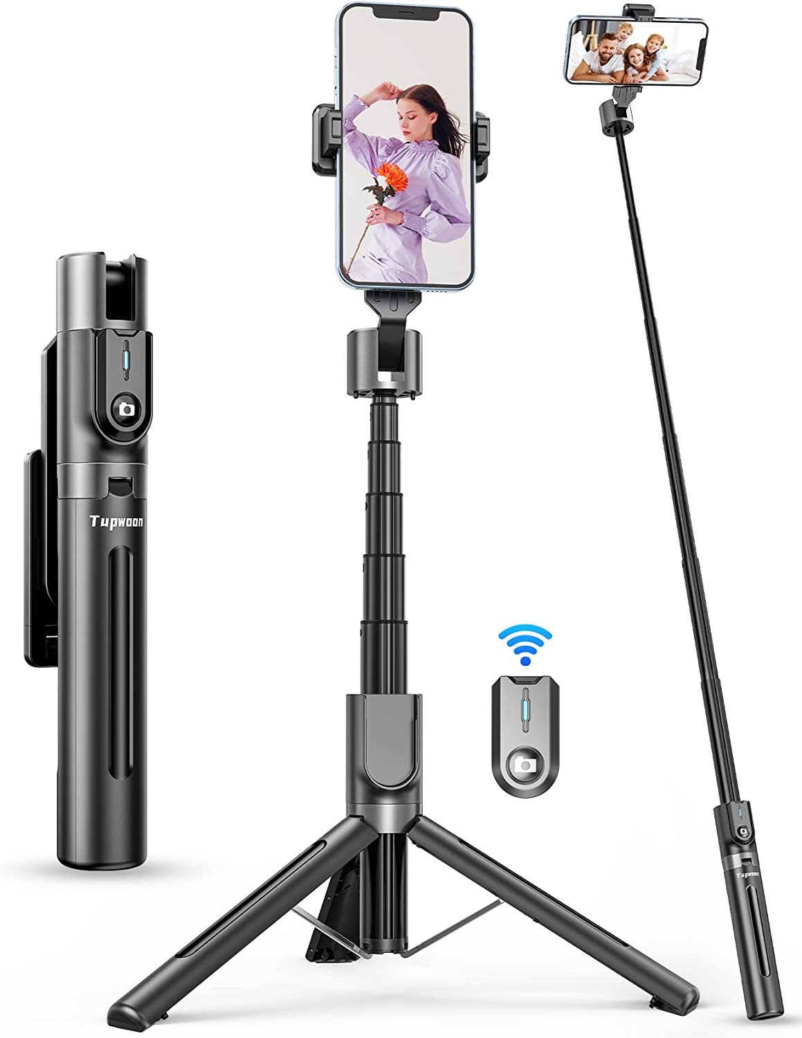 • WIDE COMPATIBILITY -- The extendable phone tripod enables multi-angle shooting fit for a more diverse device. And the selfie stick is compatible with iPhone13 Pro/13/12 Pro/12 /12mini 11pro/11/XR XS, Android, and GoPro. As it is foldable and portable, the stick is super great when you want to capture photos or videos during trips.