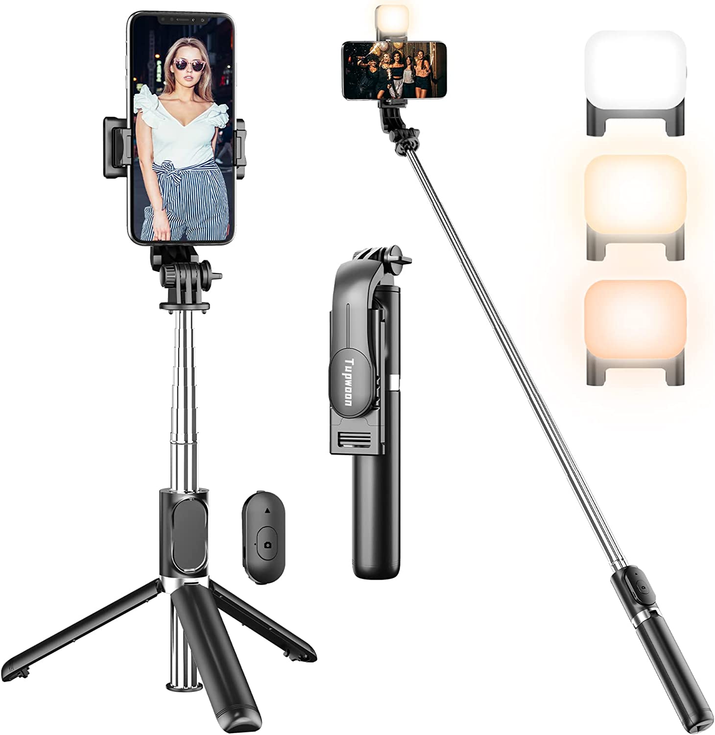 Selfie Stick Tripod with Fill Light - White, Tupwoon Extendable Selfie Stick with Wireless Remote, Flexible Phone Tripod Stand Compatible with iPhone/Galaxy, etc.