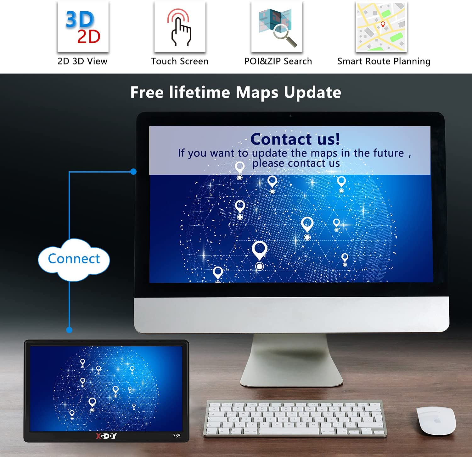 • 🚛【Lifetime Map Updated for Free】 XGODY 7-inch Navigation Systems has pre-installed with the 2023 latest North America Map, including USA Canada Mexico Maps, which has 2D / 3D map display. If you need to update the latest Map, please contact us to download it. (Downloadable but not pre-installed maps: Europe, UK, Ireland, Australia, and so on)