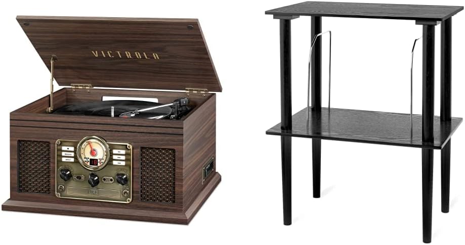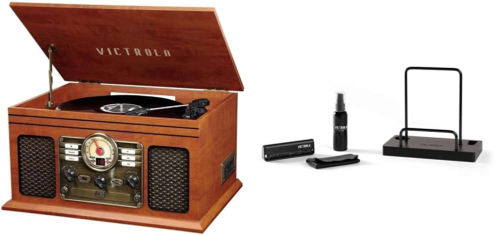 The Victrola Nostalgic 6-in-1 Solid Wood Record Player and Multimedia Player is a perfect blend of modern technology and nostalgic design. Perfect for vinyl lovers, the Classic Nostalgic Turntable features a 3-speed phono, a CD Player, a cassette tape player, and a AM/FM radio. With built-in Bluetooth, you can now stream music from your tablet, smartphone or MP3 using Bluetooth. That’s not all – with 3.5mm Auxiliary Input, USB port and Headphone jack, the turntable opens a world of music possibilities that were unimaginable in the earlier Vinyl days. This stylish retro turntable designed with real wood construction and smart front paneling is a great conversation piece!