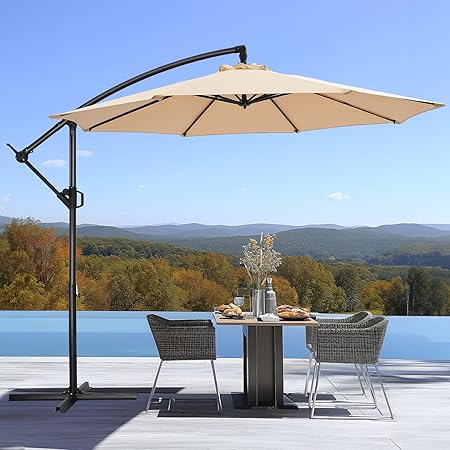10ft Offset Patio Umbrella - Offset Hanging Cantilever Patio Outdoor Market Umbrella UPF50+ UV Protection with Easy Tilt Adjustment and Crank for Pool Deck and Garden (Beige)