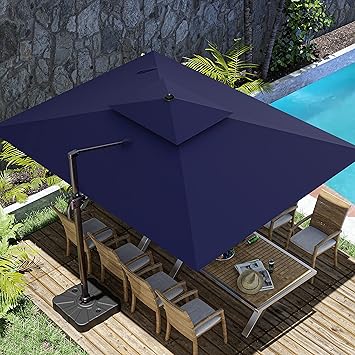 10x13FT Cantilever Outdoor Patio Umbrellas, Double Top Large Rectangle Umbrella, Heavy Duty 360«� Rotation Offset Outdoor Sun Shade Umbrella for Garden Deck Pool Backyard, Navy Blue