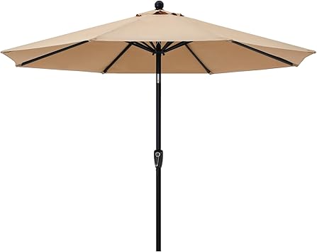 ABCCANOPY 9FT Patio Umbrella - Outdoor Waterproof Table Umbrella with Push Button Tilt and Crank, 8 Ribs UV Protection Pool Umbrella for Garden, Lawn, Deck & Backyard (Khaki)