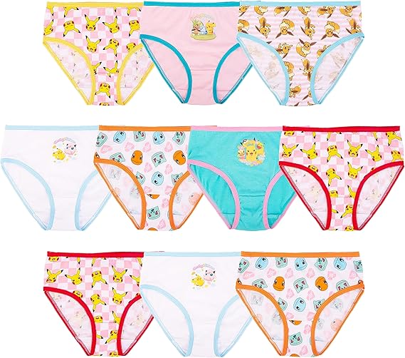 Pokemon Girls' 100% Combed Cotton Underwear with Pikachu, Evee, Squirtle, Jigglypuff and More in Sizes 4, 6 and 8