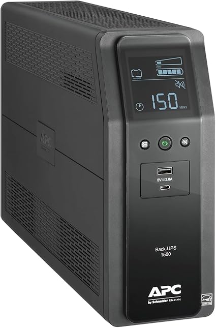 APC 1500VA UPS Battery Backup & Surge Protector, Backup Battery Power Supply with AVR, Dataline Protection, BN1500M2R (Renewed)
