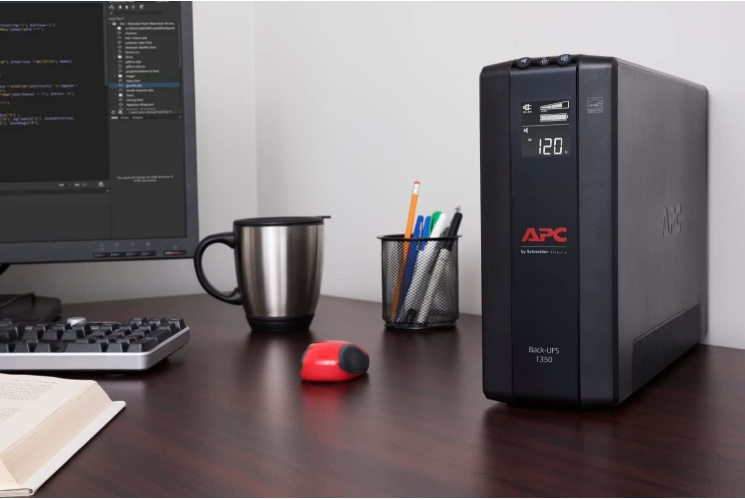This APC battery back up power supply offers guaranteed power and surge protection for wireless networks, computers, and other electronics in your home or business. Backup battery power supply is designed for use during outages and unsafe voltage fluctuations, and provides surge protector with battery backup in the event of damaging power surges and spikes. The APC Back-UPS PRO series of Uninterruptible Power Supply are the perfect battery backup for computer, external harddrive and routers to protect your data and keep you connected. This APC 850VA UPS offers AVR, is active PFC compatible, and has a User-replaceable battery to prolong the life of your UPS by APC.