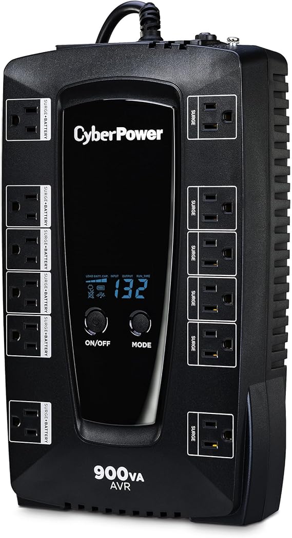CyberPower AVRG900LCD Intelligent LCD UPS System, 900VA/480W, 12 Outlets, AVR, Compact