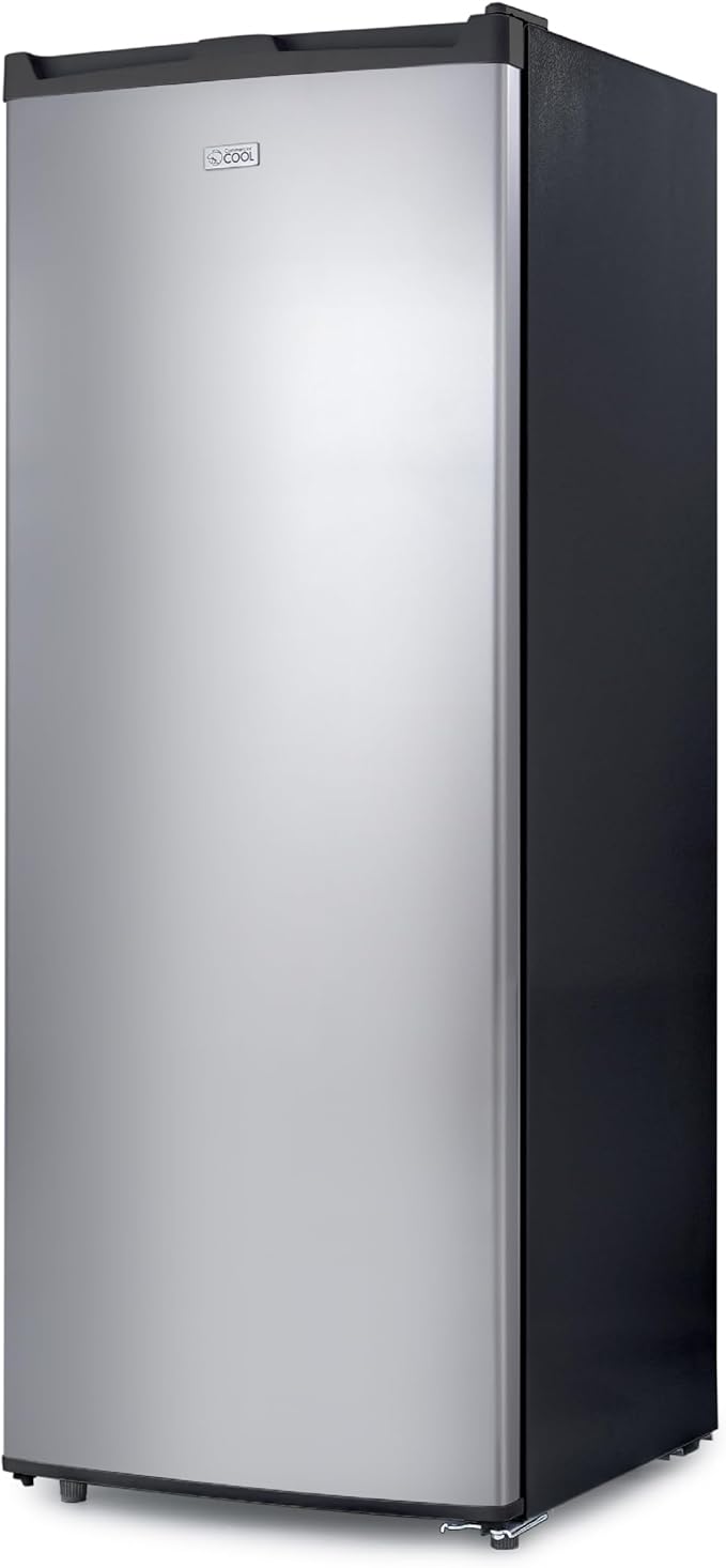 Commercial Cool Upright Freezer, Stand Up Freezer 6 Cu Ft with Reversible Door, Black with VCM Door