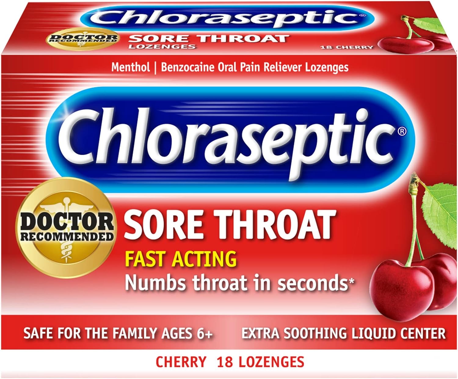 Chloraseptic is the Number One Sore Throat Relief Brand (1). With Chloraseptic Sore Throat Lozenges and Sprays, you get fast acting relief in a variety of flavors from a brand that has been relieving sore throats for over 55 years. Our fast-acting sprays and soothing lozenges relieve pain on contact and coat your throat for additional comfort. For on-the-go relief, try Chloraseptic Sore Throat Lozenges! This fast-acting sore throat remedy will be handy to keep in the medicine cabinet for fast, easy access at home or take them on-the-go for throat and mouth pain relief anytime or anywhere. Lozenges come in flavors like Wild Berries, Citrus and Warming Honey Lemon and in Sugar Free Wild Cherry and are for use with adults and children 6 years of age and over. Chloraseptic Sore Throat Sprays are aspirin free and sugar free and are for use with adults and children 3 years of age and over. (1) IRI Data Total Units Sold Ending 11/27/22, Multi-Outlet + Convenience