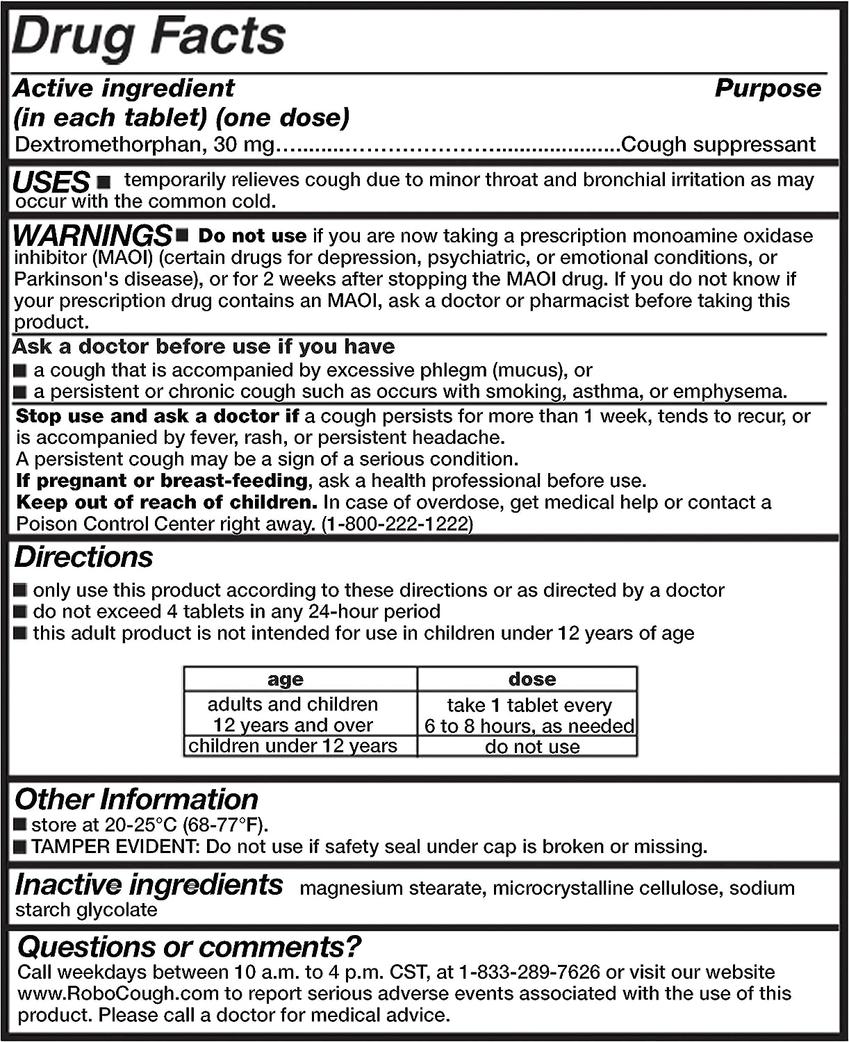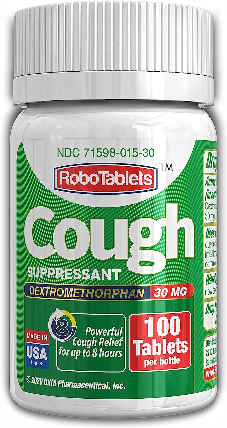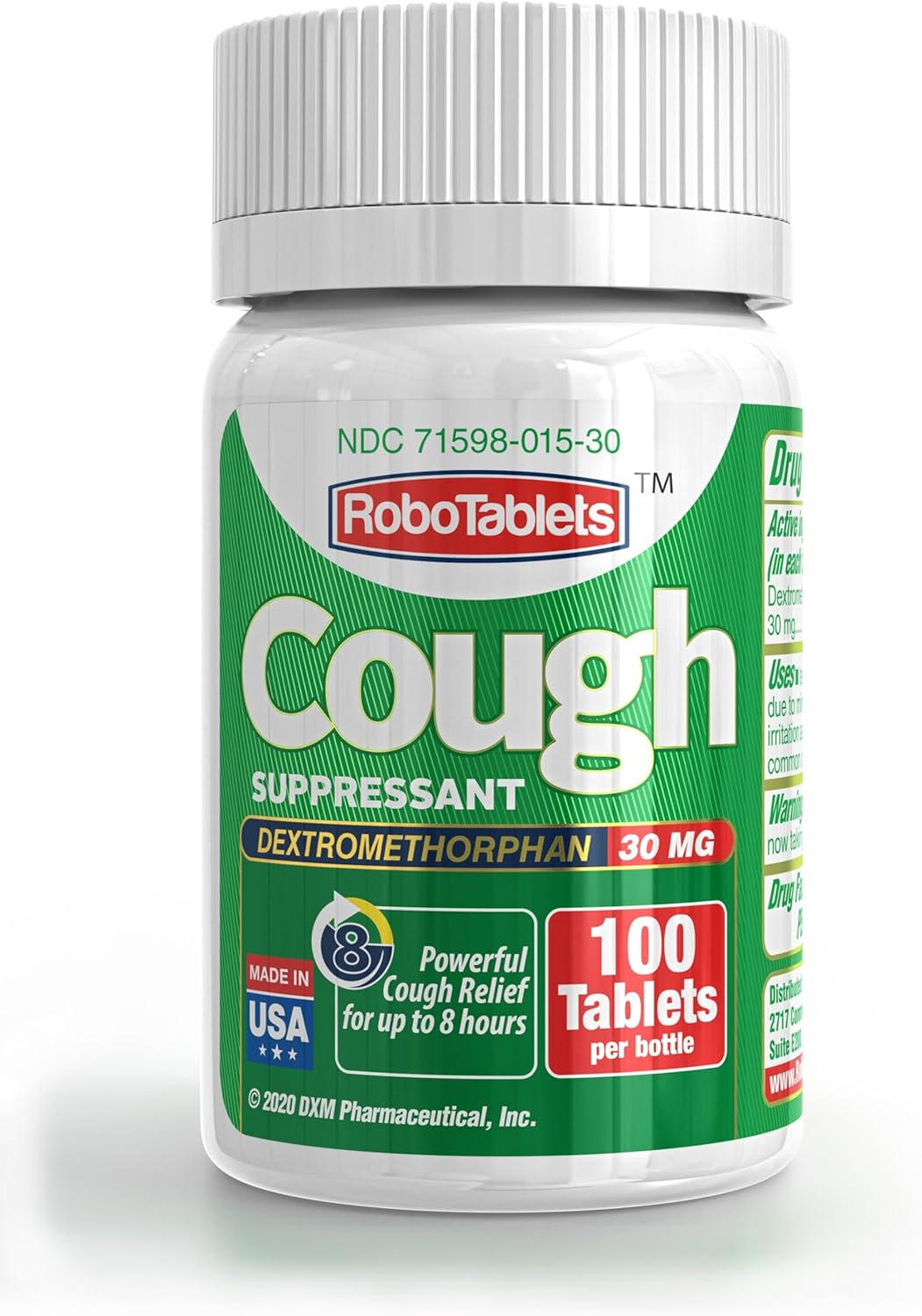 ACTIVE INGREDIENT: This product contains 30 mg dose dextromethorphan in each tablet. 100 tablets per bottle. EASY-TO-SWALLOW: The smallest dextromethorphan tablets in the USA at 5 mm diameter makes swallowing effortless. FAST ACTING: Tablet dissolves in seconds, digests as fast as liquid. COUGH SUPPRESSANT: RoboTablets temporarily relieves cough due to minor throat and bronchial irritation as may occur with the common cold. EFFECTIVE COUGH RELIEF: RoboTablets provides powerful suppressant action that targets the source of your cough for up to 8 hours. NON-DROWSY: When taken as directed, this cough suppressant relief is formulated to be a non-drowsy solution for cough