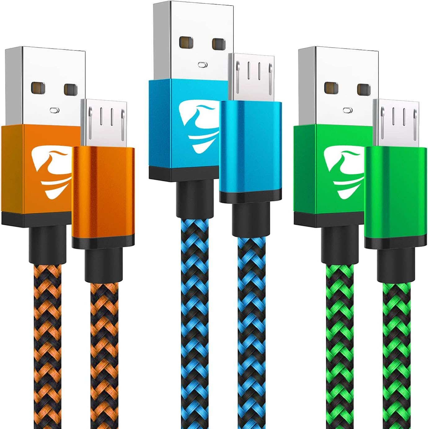 Aioneus Micro USB Cable Fast Android Charging Cord 6FT 3Pack Charging Cable Braided Charger Cord for Samsung Galaxy S7 Edge S6 S5 S2 J7 J7V J5 J3 J3V J2, LG K40 K20, Moto E4 E5 E6, Tablet, PS4, Xbox