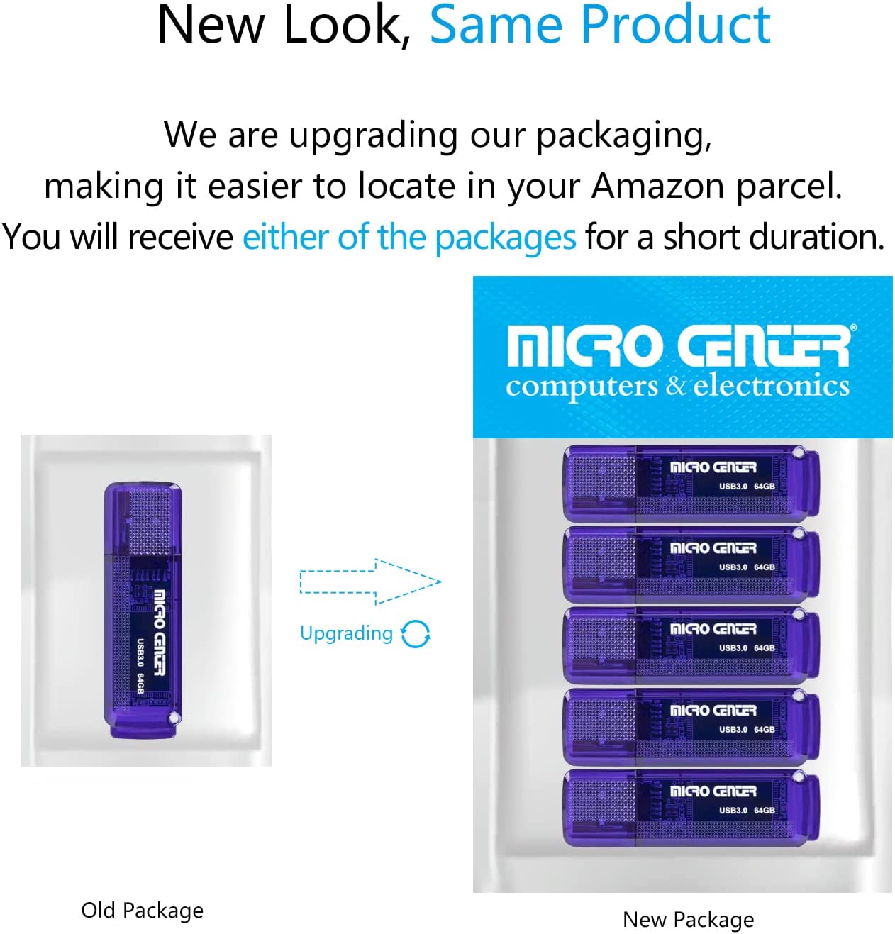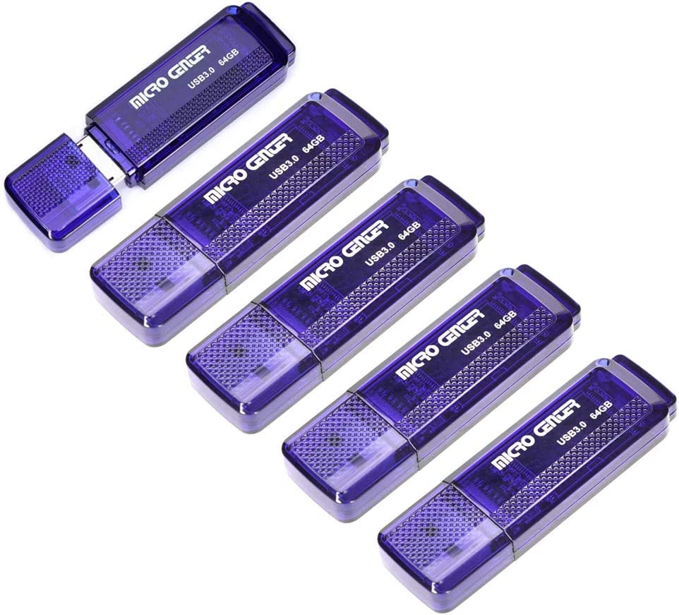 Micro Center SuperSpeed 5 Pack 64GB USB 3.0 Flash Drive Gum Size Memory Stick Thumb Drive Data Storage Jump Drive (64G 5-Pack)