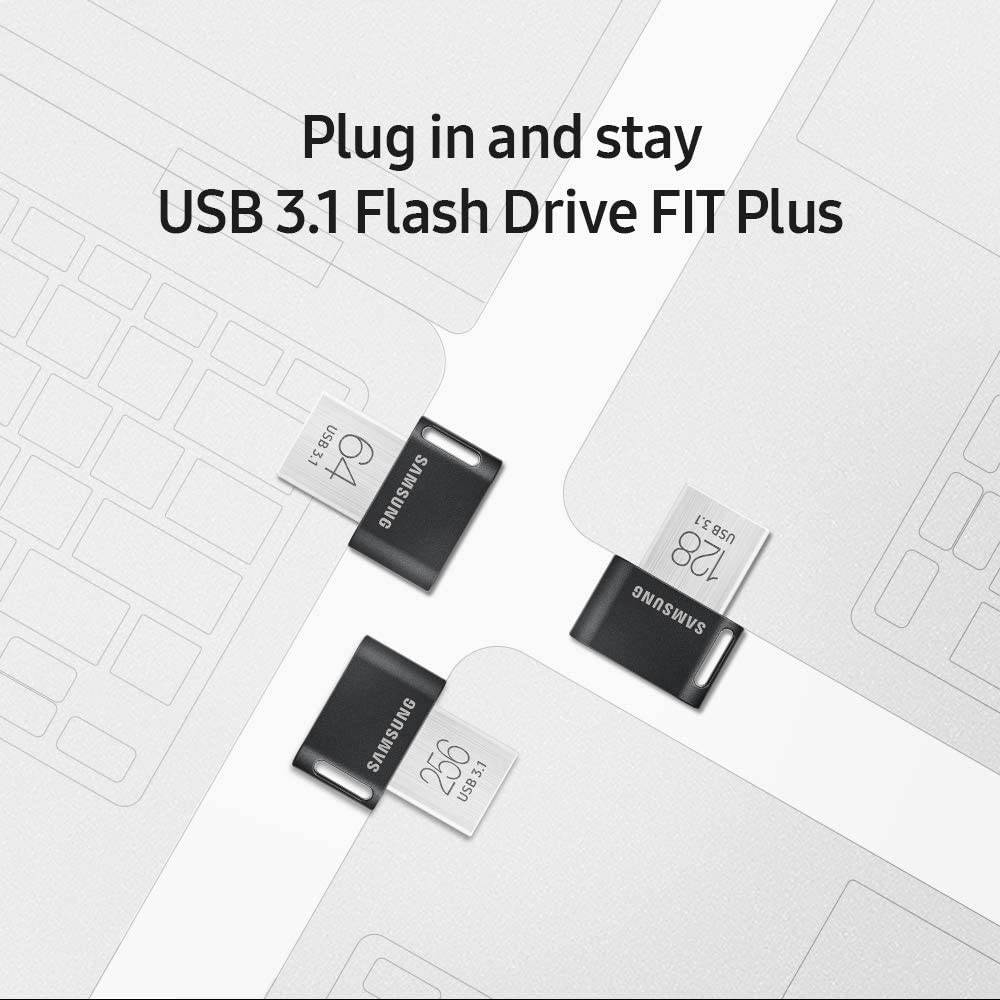 Redefine everyday file transfers with the Samsung FIT Plus. Just plug it in and expand the storage of your devices with an unnoticeable, seamless fit. Designed with a key ring to prevent loss. Fast and convenient read speeds up to 300MB/s , so that you have more time to work, play, watch, and create. A reliable and secure solution for your personal photos, videos, music, documents, and files. Safeguard your data backed by a 5-year limited warranty (water proof, shock proof, magnet proof, temperature proof, x-ray proof). Experience Samsung's industry-leading V-NAND (64-layer) technology. Speeds may vary by capacity.