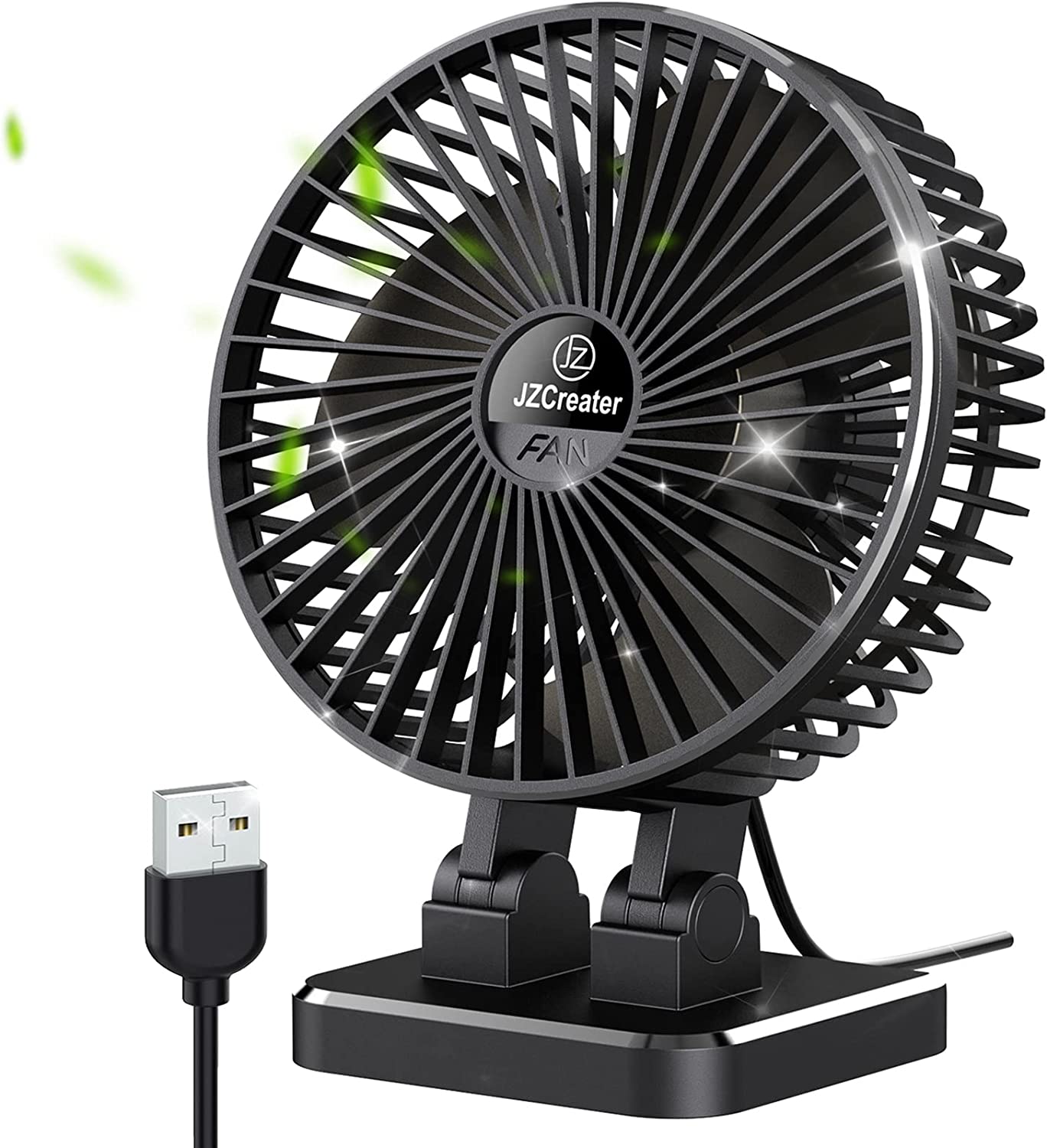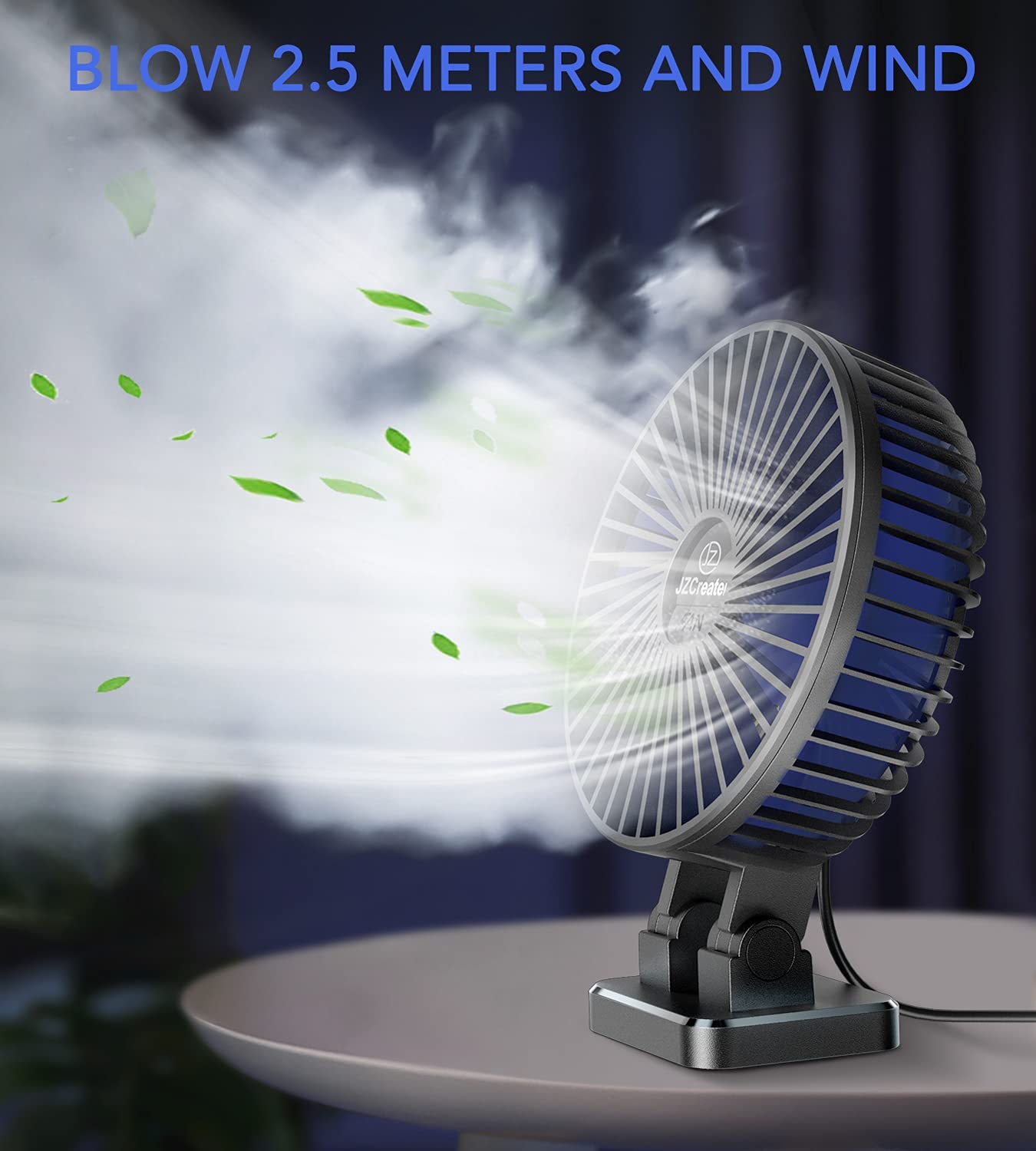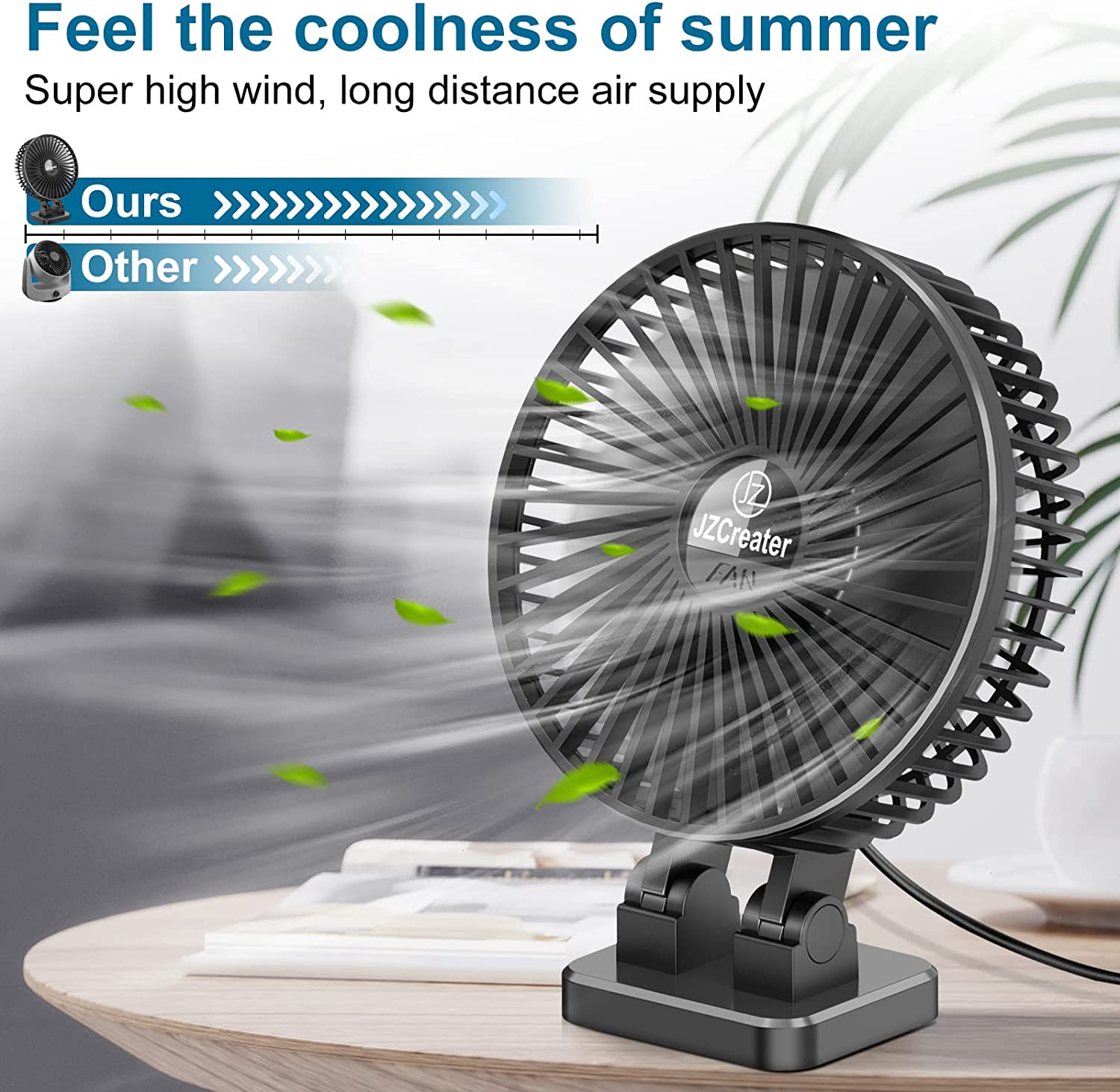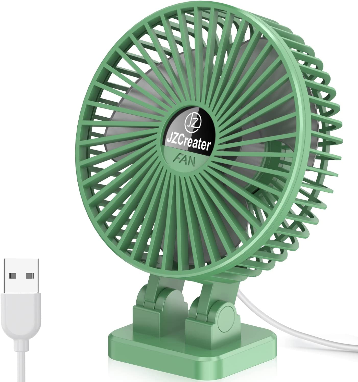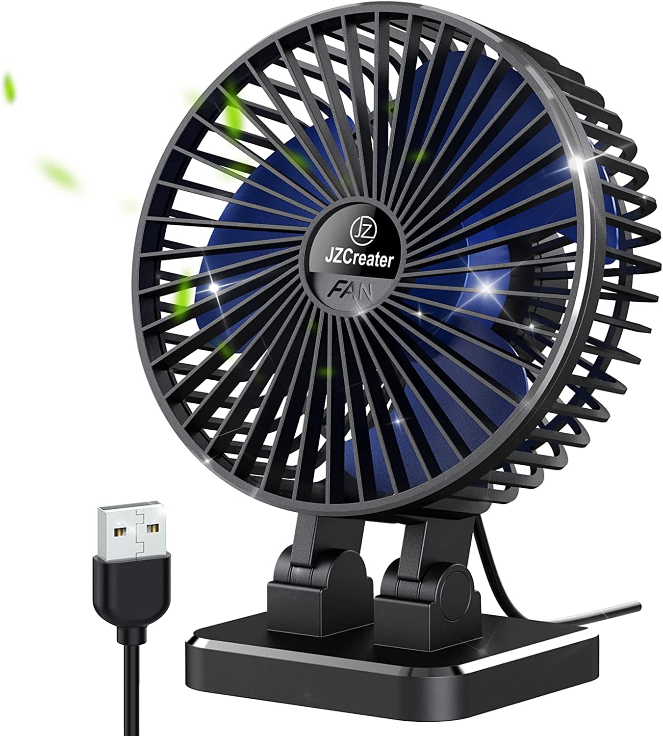 JZCreater USB Desk Fan, Mini Fan Portable, 3 Speeds Desktop Table Cooling Fan, Plug in Power Fan, Rotation Strong Wind, Quiet Personal Small Fan for Home Desktop Office Travel, 5INCH, Black Blue