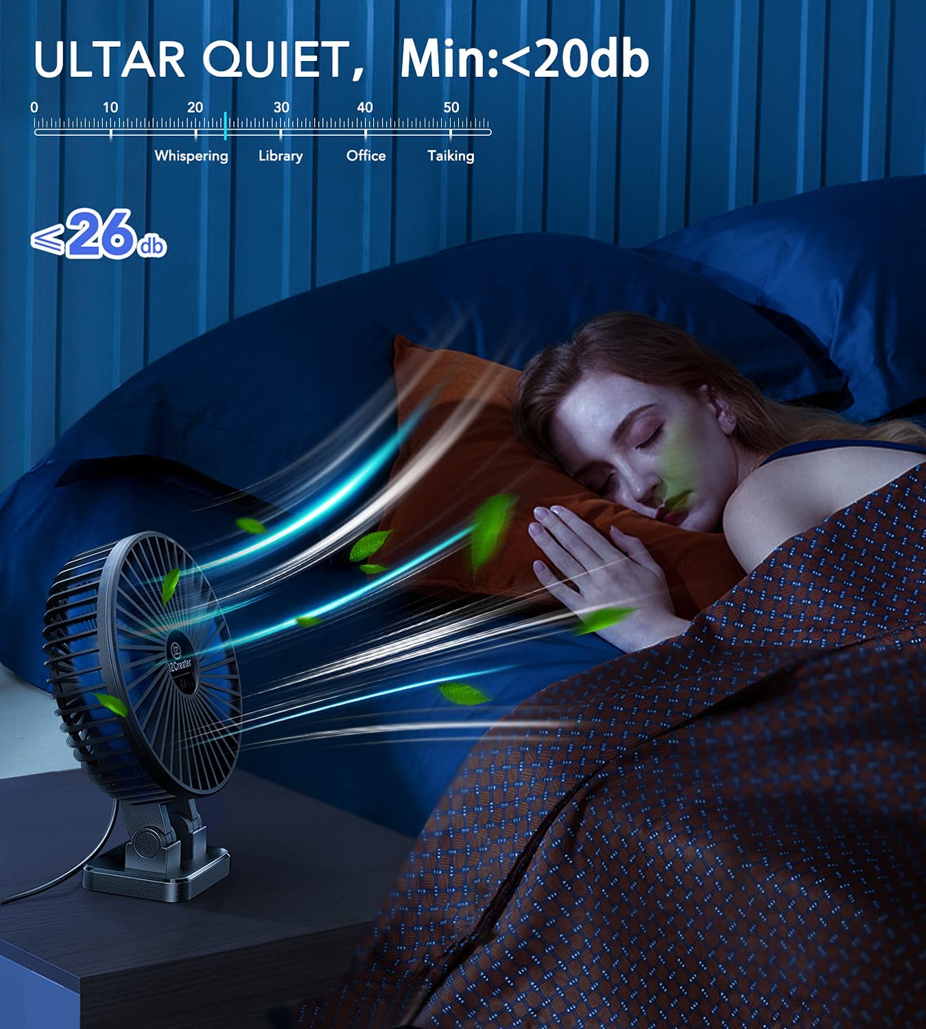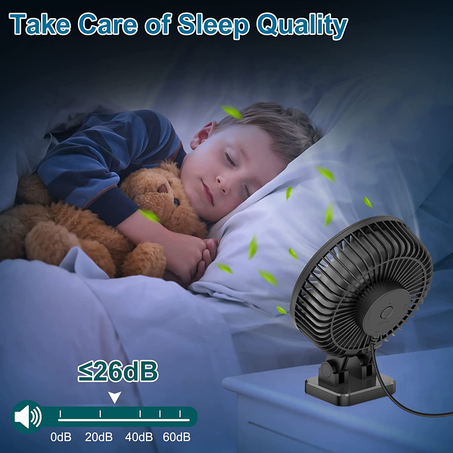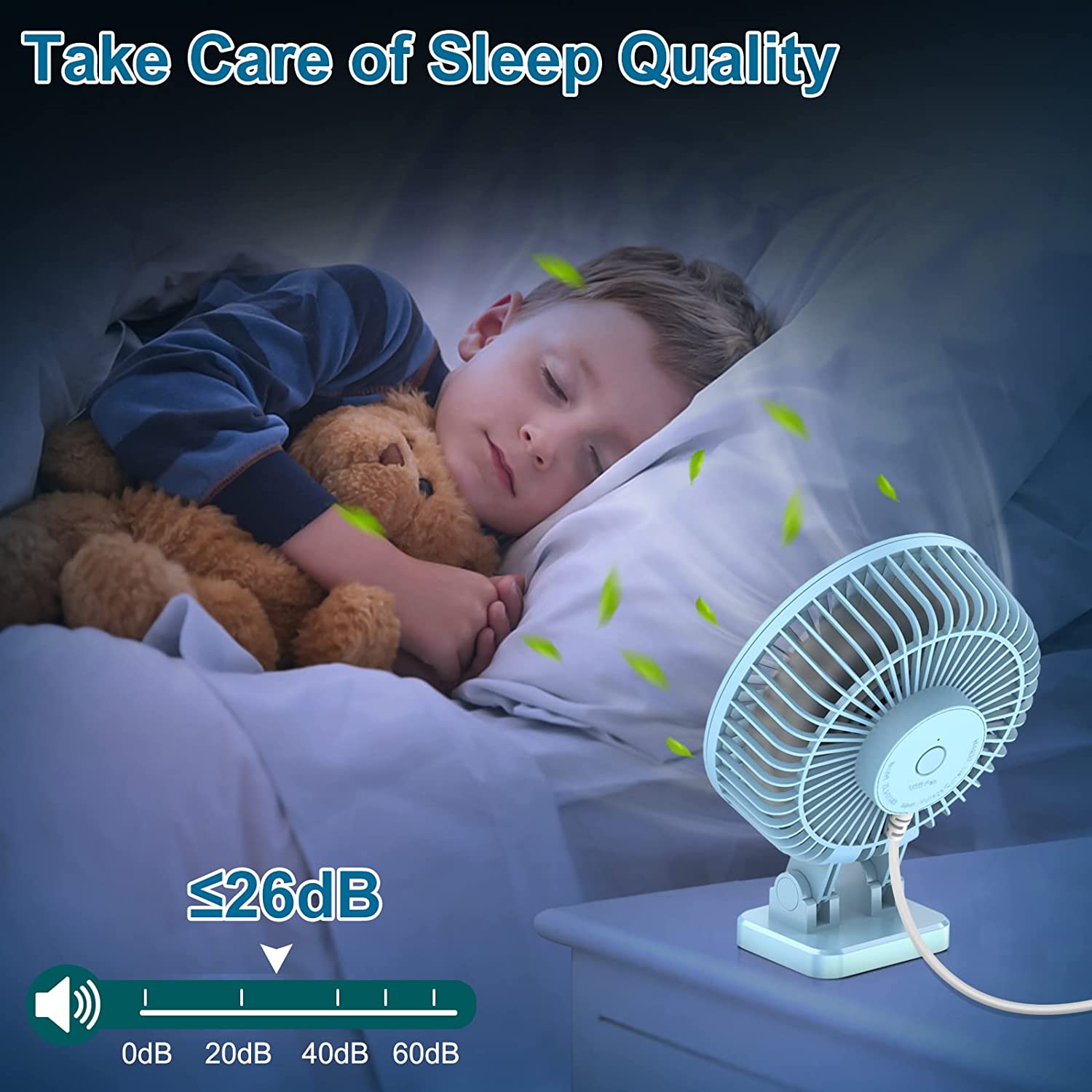 • 【Ultra Quiet】Feature with brush-less quiet motor, which makes the mini fan run quietly yet blow strong airflow. When in use the fans sound is lower than 50db at the high speed. The switch indicator will auto turn off after 30 seconds, power saving, soft wind and bass provide a good sleeping for baby.