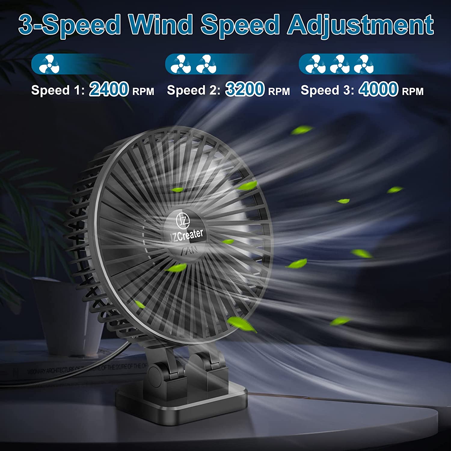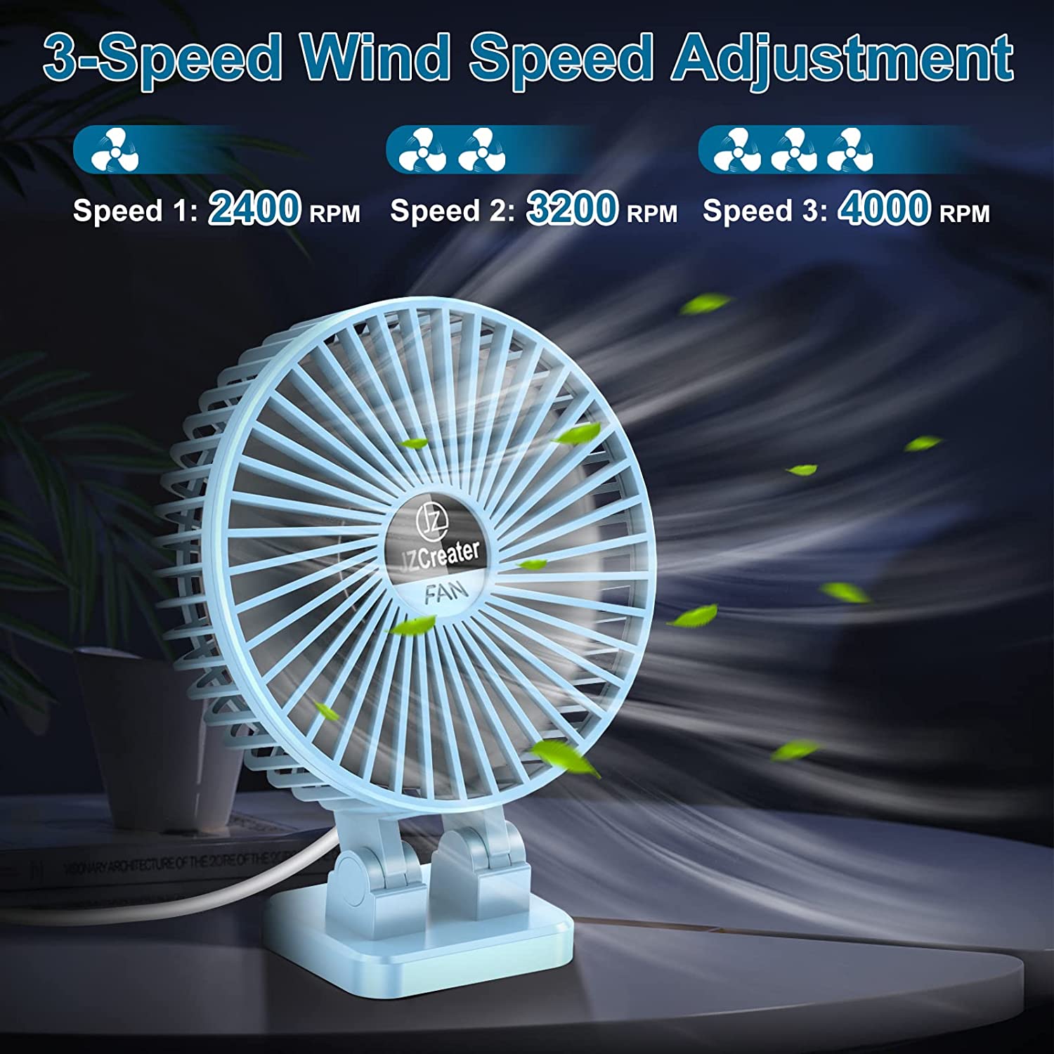 • 【3 speed Adjustable】This small desk fan provides you low/medium/high 3 speed levels to choose. Select the appropriate fan speed by pressing the power button repeatedly. It has a self checking function not found in many of the similar products in which the fan will run for 2 seconds to check during excessive power flow.