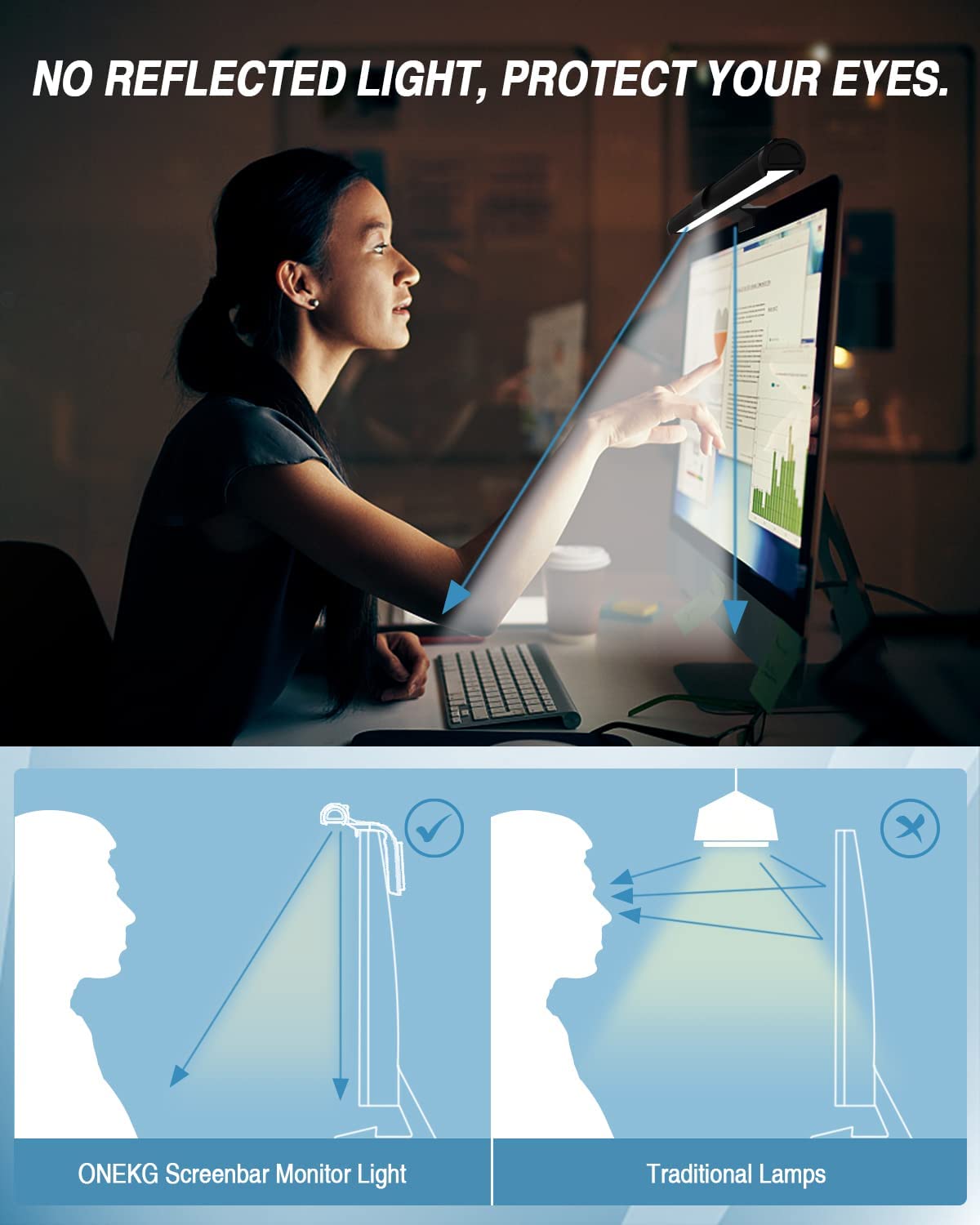ONEKG Screenbar Monitor Light, USB Powered LED Monitor Lamp with Touch Control, Screen Light Bar e-Reading Lamp for Office and Home