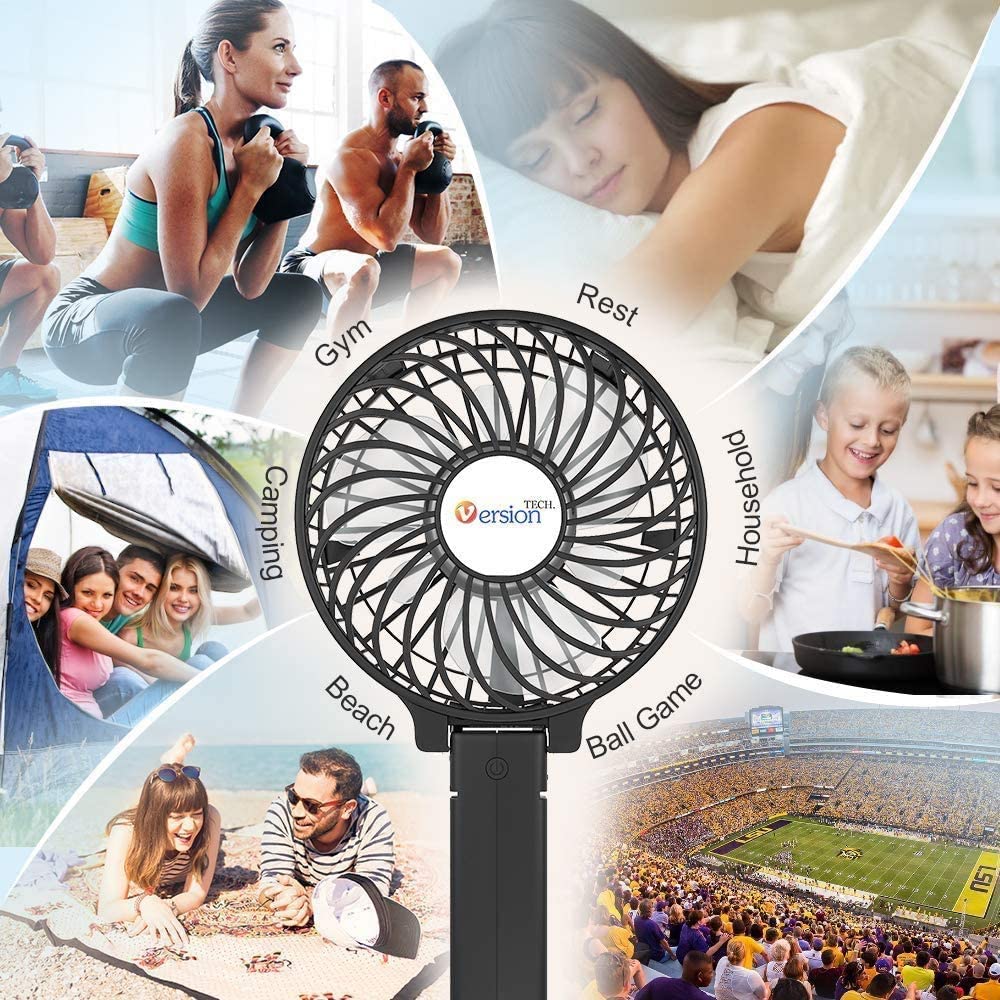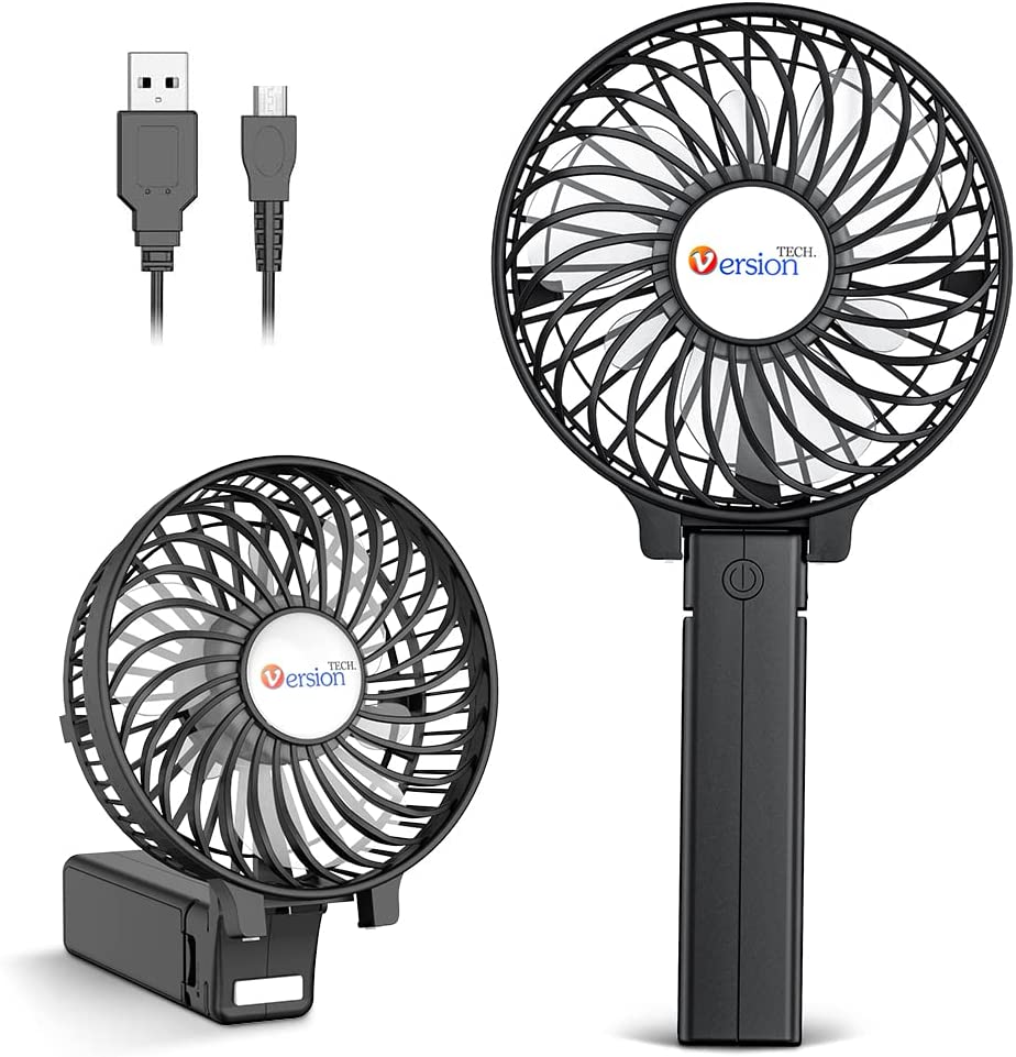 VersionTECH. Mini Handheld Fan, USB Desk Fan, Small Personal Portable Table Fan with USB Rechargeable Battery Operated Cooling Folding Electric Fan for Travel Office Room Household Black