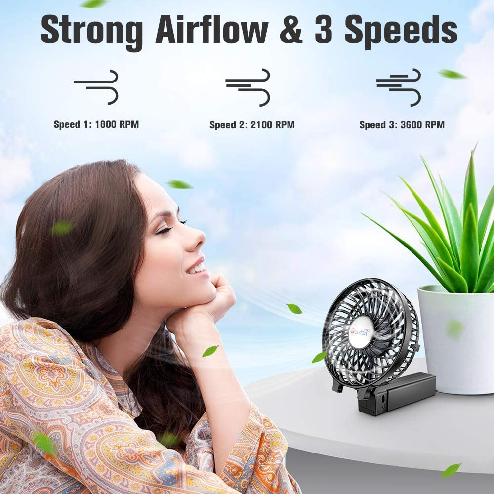 • ?【Super Strong Wind】: The portable fan adopts high-effective motor, which is available to nearly 3,600 revolutions per minute for exceptional cooling performance. You can enjoy the powerful cooling wind in hot summer.