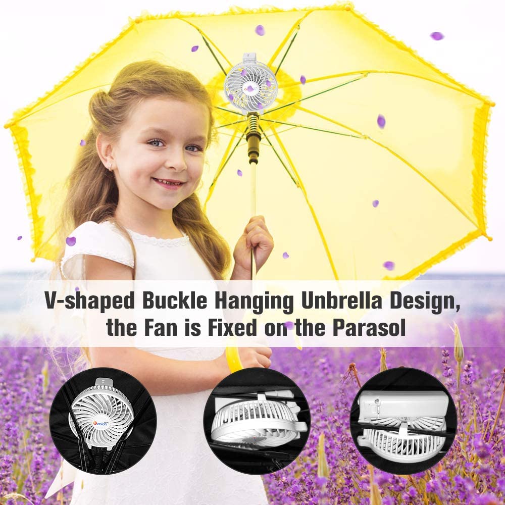 • ?️【HANGING UMBRELLA DESIGN】: Unique design style, you can hang the fan above your umbrella or parasol please check the fifthth picture. The design is ideal for outdoor crowds, and you don't have to worry about the outdoors even when the temperature is so high, because this fan can cool you down,It's a must-have for the summer.