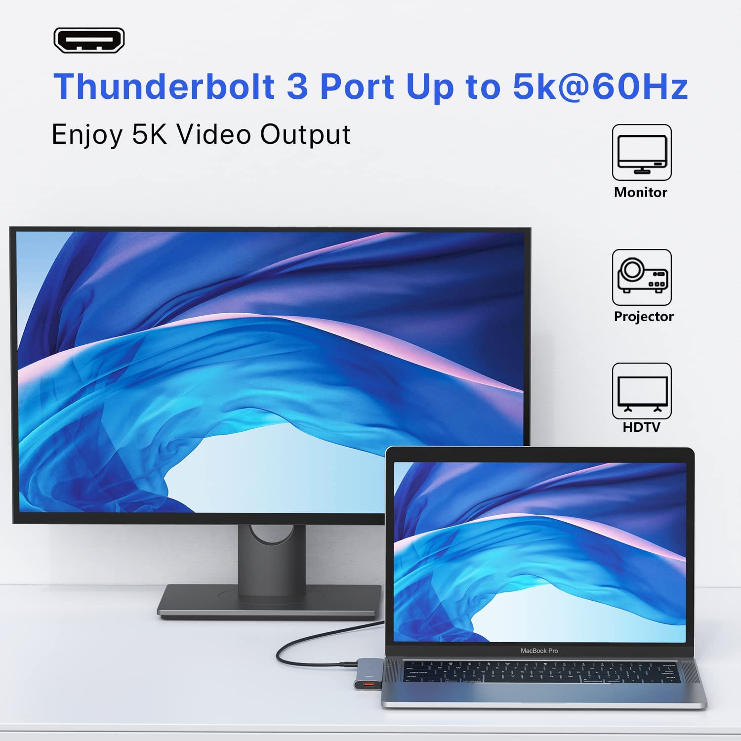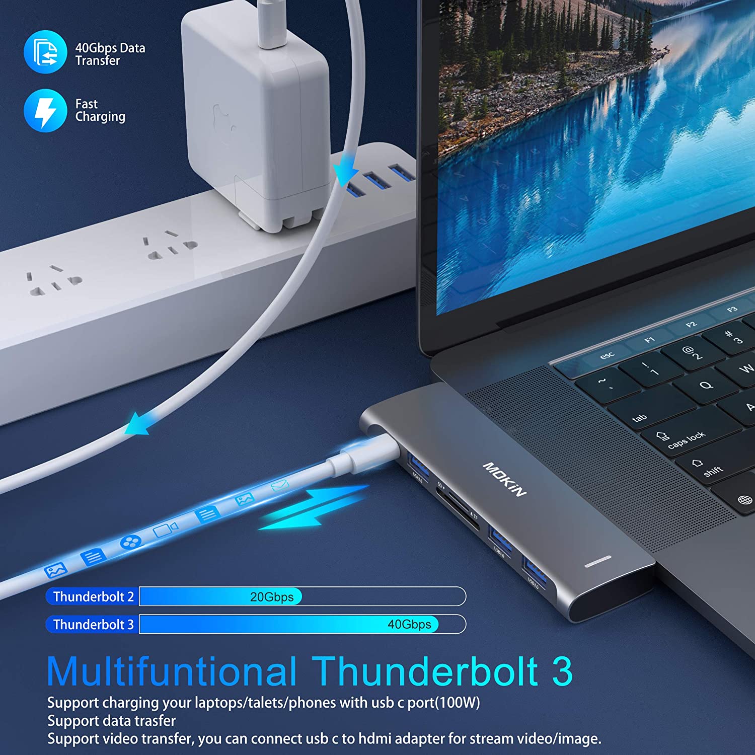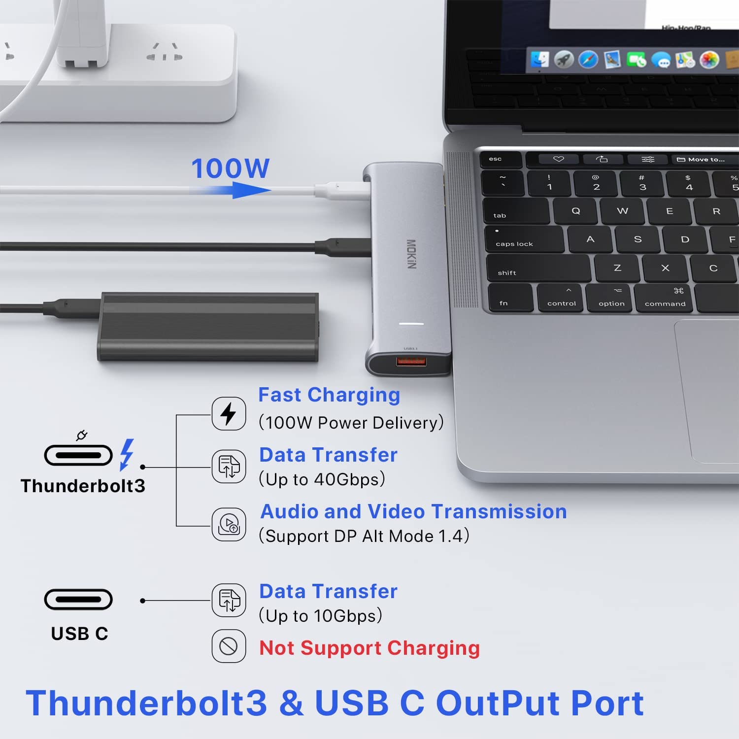 • Fast Power Delivery: MOKiN USB C Adapter have powerful USB C /Thunderbolt 100W Power-delivery function to keep your MacBook Pro/Air laptop charging all the time. Supports up to 5K or 2x4K @ 60Hz video display; Transferring data at speeds of up to 40Gb/s, which is two times faster than Thunderbolt 2 port.Quickly to charge your MacBook Pro and provide stable transferring data, worry-free about power storage